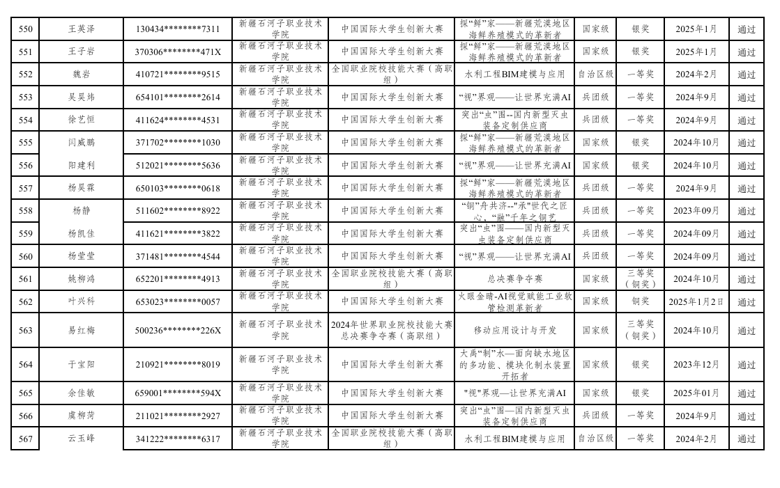 2024年世界职业院校技能大赛总决赛斩获1金3银8铜,第七届中华职业教育创新创业大赛全国总决赛高职组摘得桂冠。2025年专升本免试人数高达138人(112人凭竞赛成绩、26名退役军人)位列兵团高职院校第一……。这份亮眼的成绩单,折射出学校“岗课赛证融通”综合育人模式的显著成效。