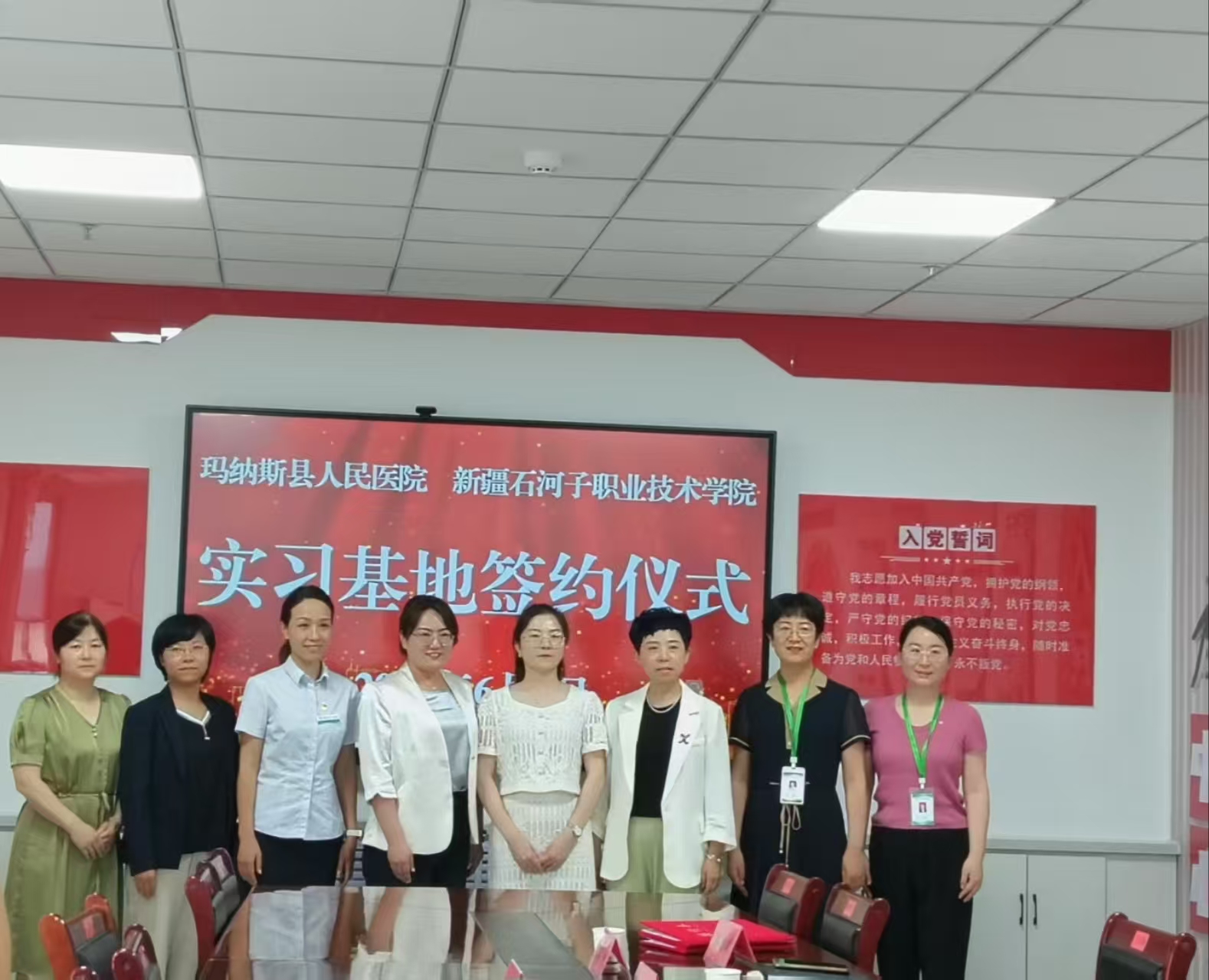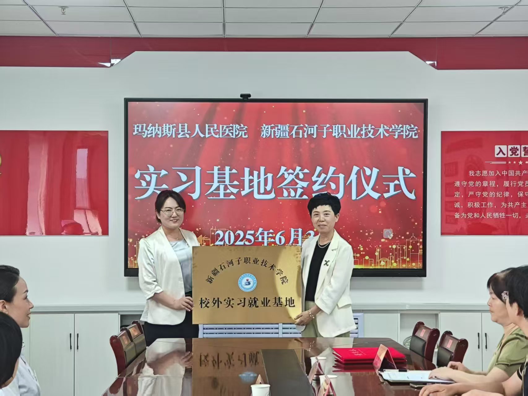 在全体与会者见证下,双方代表签署合作协议,并为“新疆职业技术学院护理专业校外实习就业基地”授牌,标志着校院协同育人启动。未来双方将以基地为纽带,拓展合作深度,探索创新机制,夯实新疆医疗卫生人才基础。