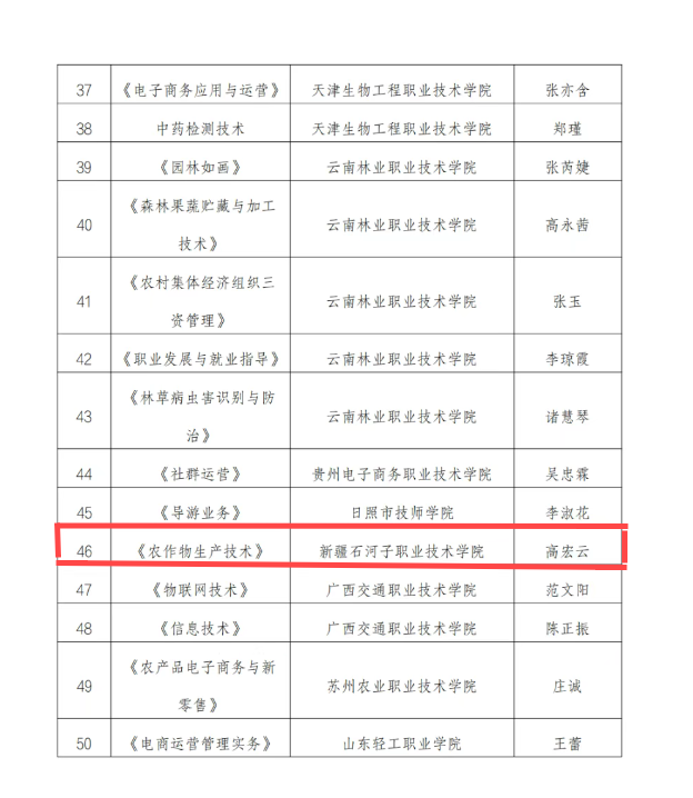 此次农作物生产技术课程获选,是对学校及学院长期重视现代农业技术专业建设、积极推进乡村振兴战略服务的有力肯定,不仅彰显了学校专业教师的扎实素养,更为兵团农业人才培养与区域智慧农业发展贡献了重要力量。