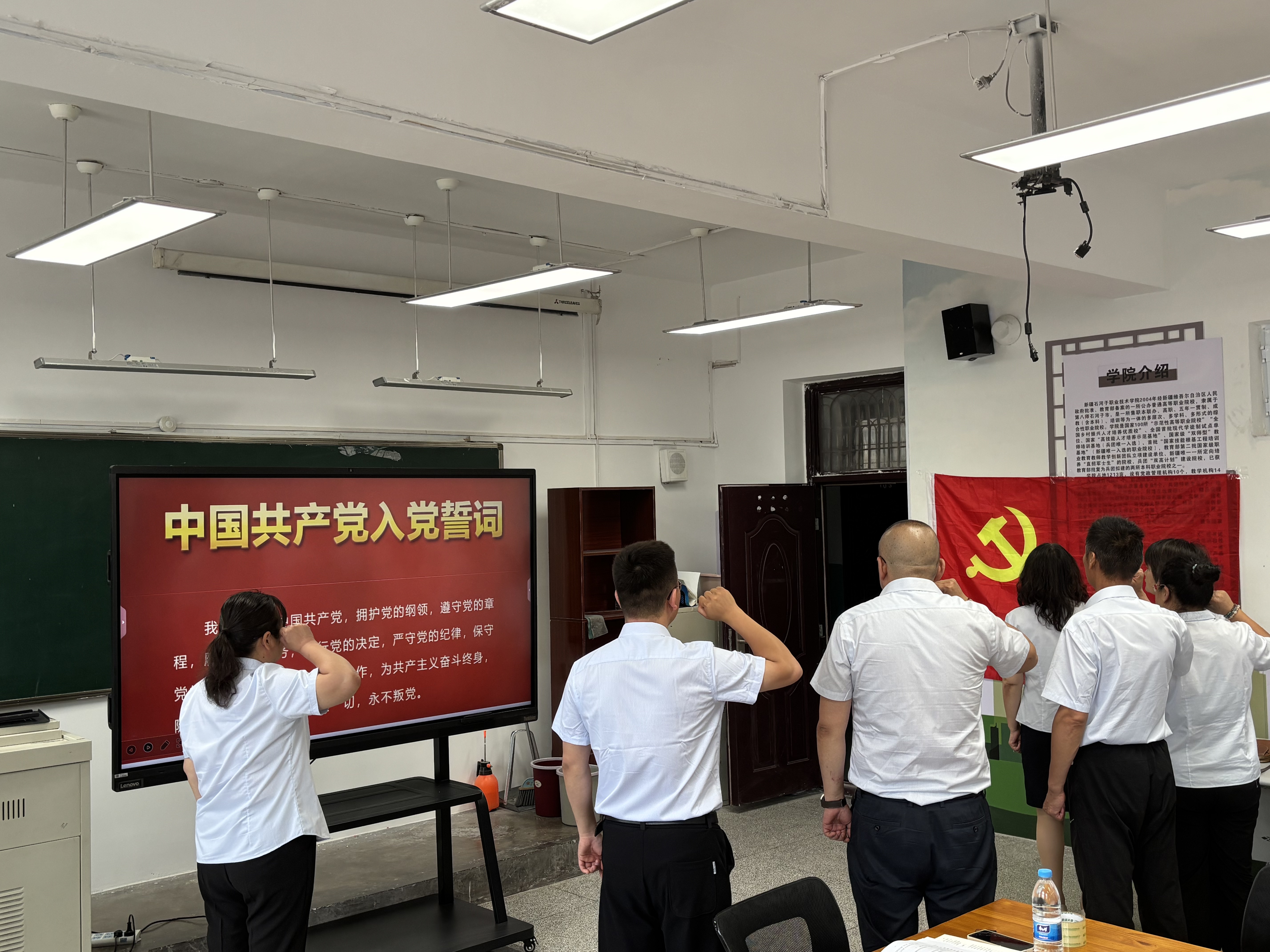 在党支部书记王国强的带领下,全体党员面向党旗庄严宣誓,铮铮誓言响彻会场,既彰显着对党的无限忠诚,也传递出为人民服务的坚定决心;活动中,党员们共交纳党费551元,还通过学习党的光辉历史、重读入党申请书、分享“党员心声”等丰富形式,为党员过了一次意义深刻的政治生日,最后全体党员一同观看“我身边的好党员”专题视频,深入学习身边榜样的优秀事迹,这些鲜活故事让大家深受感动与鼓舞,纷纷表示要以榜样为标杆,在各自岗位上履职尽责、拼搏奉献,用实际行动践行初心使命。