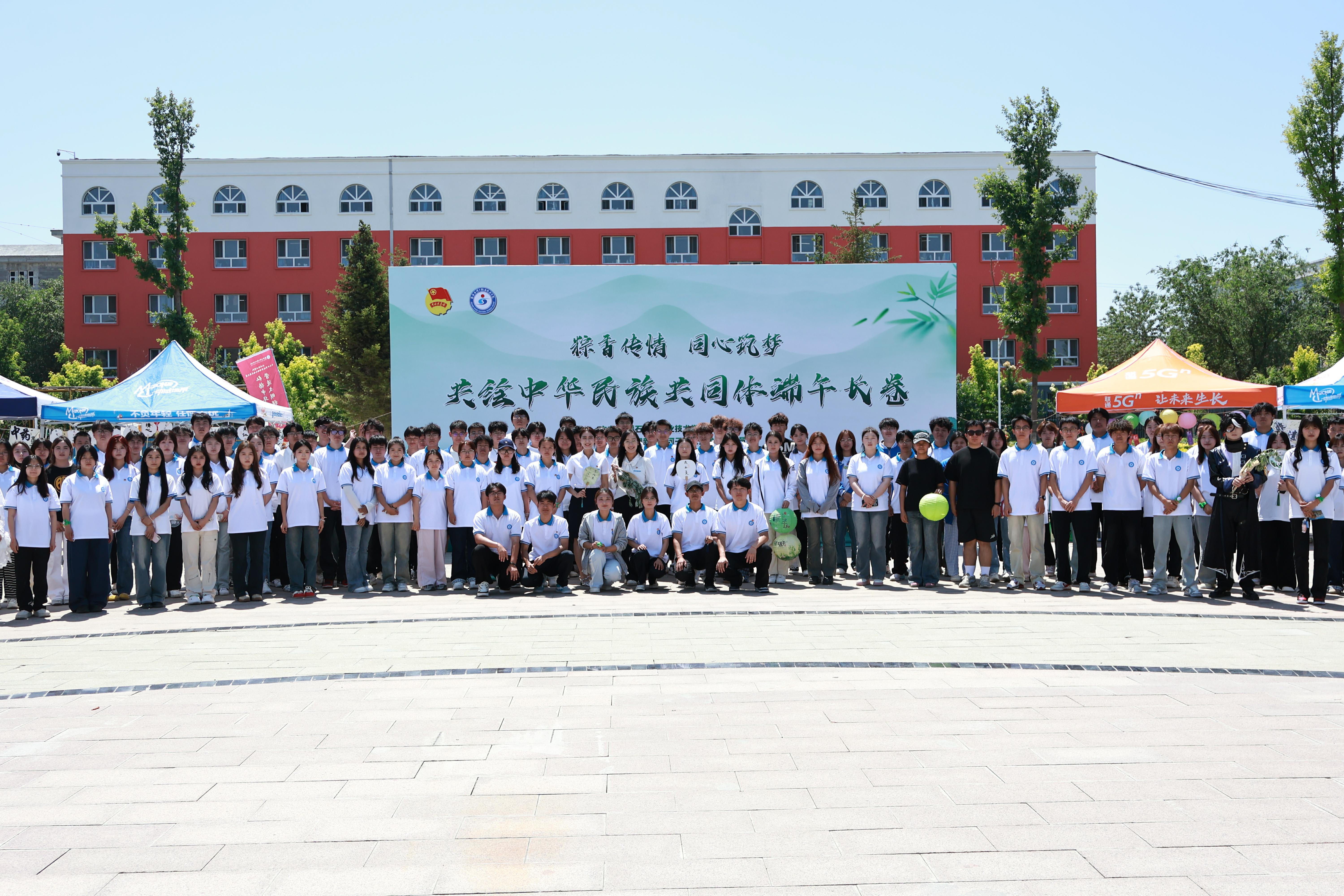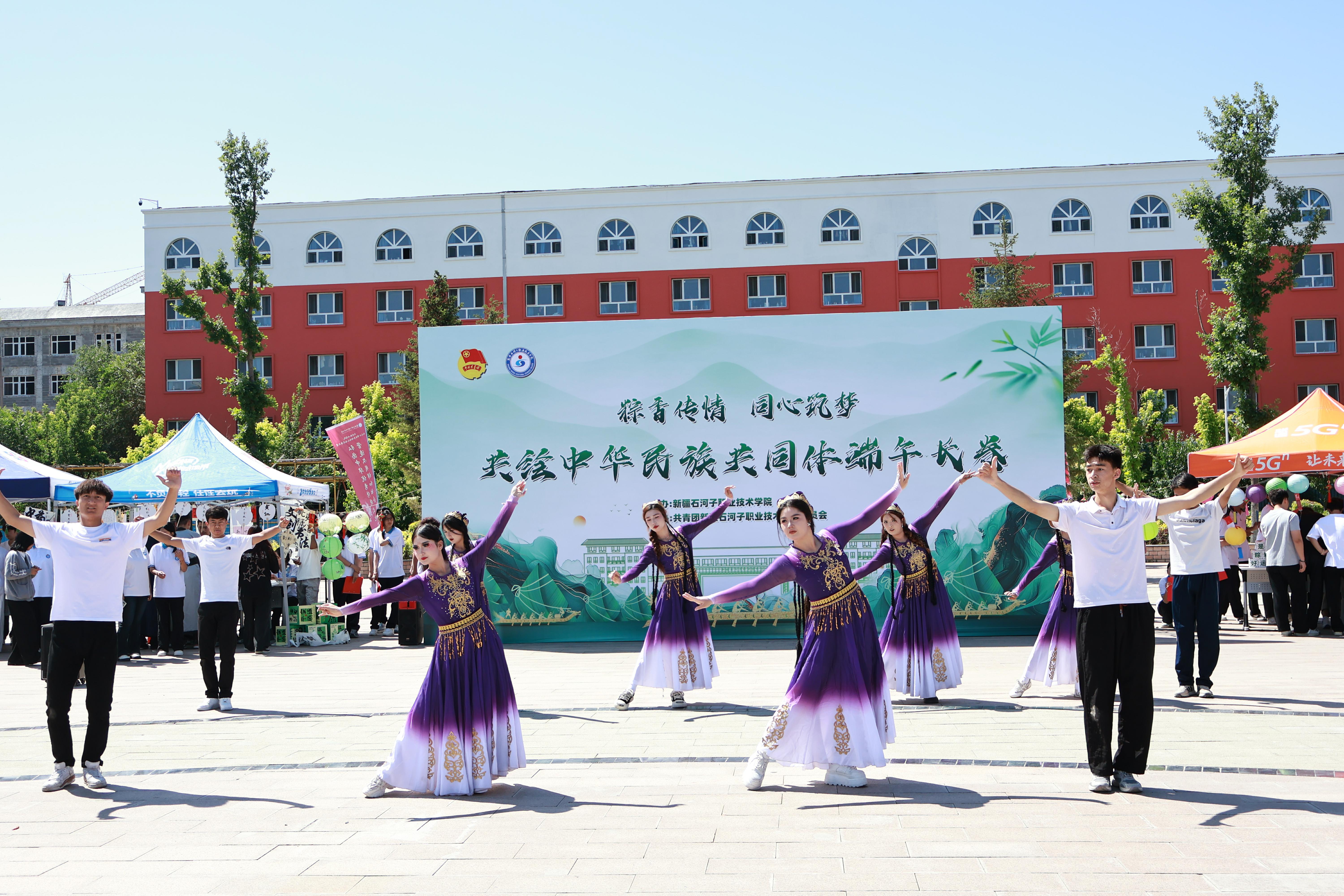 2025年5月30日上午,beat365唯一官方网站团委在学术报告厅门前小广场举办“粽香传情 同心筑梦——共绘中华民族共同体端午长卷”主题活动,兵团教育局党组成员、副局长赵首辰,第八师党委常委、副政委、统战部部长宋德忠,兵团教育局职业教育与成人教育处副处长李媛媛,第八师石河子市教育局党委书记、局长黄博,学校党委书记史文革、院长林炯,兵团部局领导、兵团各职业院校领导、师市部局领导及各职业院校的1000余名师生齐聚一堂,以文化交融铸牢中华民族共同体意识。活动现场,墨攻书画社、手工艺社等多个社团带来精彩的成果展演,古典舞表演、非遗技艺展示轮番上演,尽显中华优秀传统文化魅力。