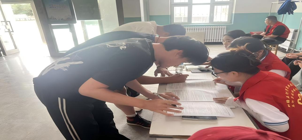 活动现场洋溢着热烈氛围,同学们积极响应、热情投入。大家专注倾听工作人员深入浅出的讲解,在医护人员的科学指导和志愿者的贴心协助下,有条不紊地推进各项环节。从规范填写资料、准确录入信息,到严谨进行血压测量,每个步骤都严格把关,确保每位参与献血的同学身体条件符合标准,为献血活动的顺利开展筑牢安全防线 。