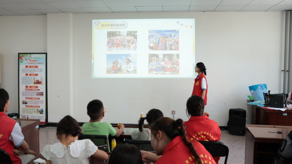 在“民族文化”课堂上,志愿者通过生动有趣的图片、视频和故事,向孩子们介绍了我国丰富多彩的少数民族文化,从独特的民族服饰到传统的风俗习惯,从优美的民族歌舞到古老的传说故事,让孩子们仿佛置身于一个多元文化的世界,孩子们在多元文化的浸润中,深入理解各民族像石榴籽一样紧紧抱在一起”的理念,深刻体会到中华文化的博大精深与民族团结的深厚根基。