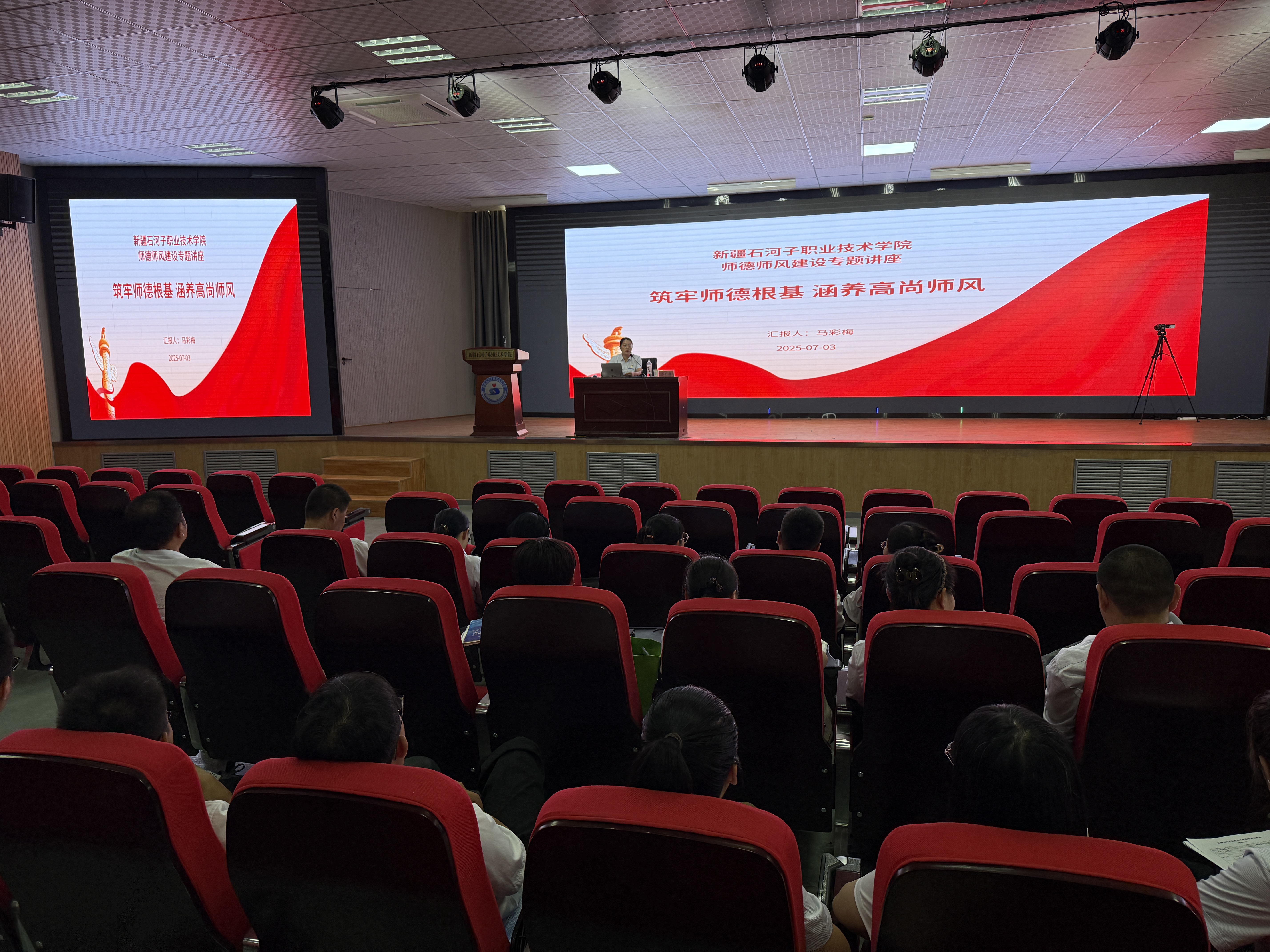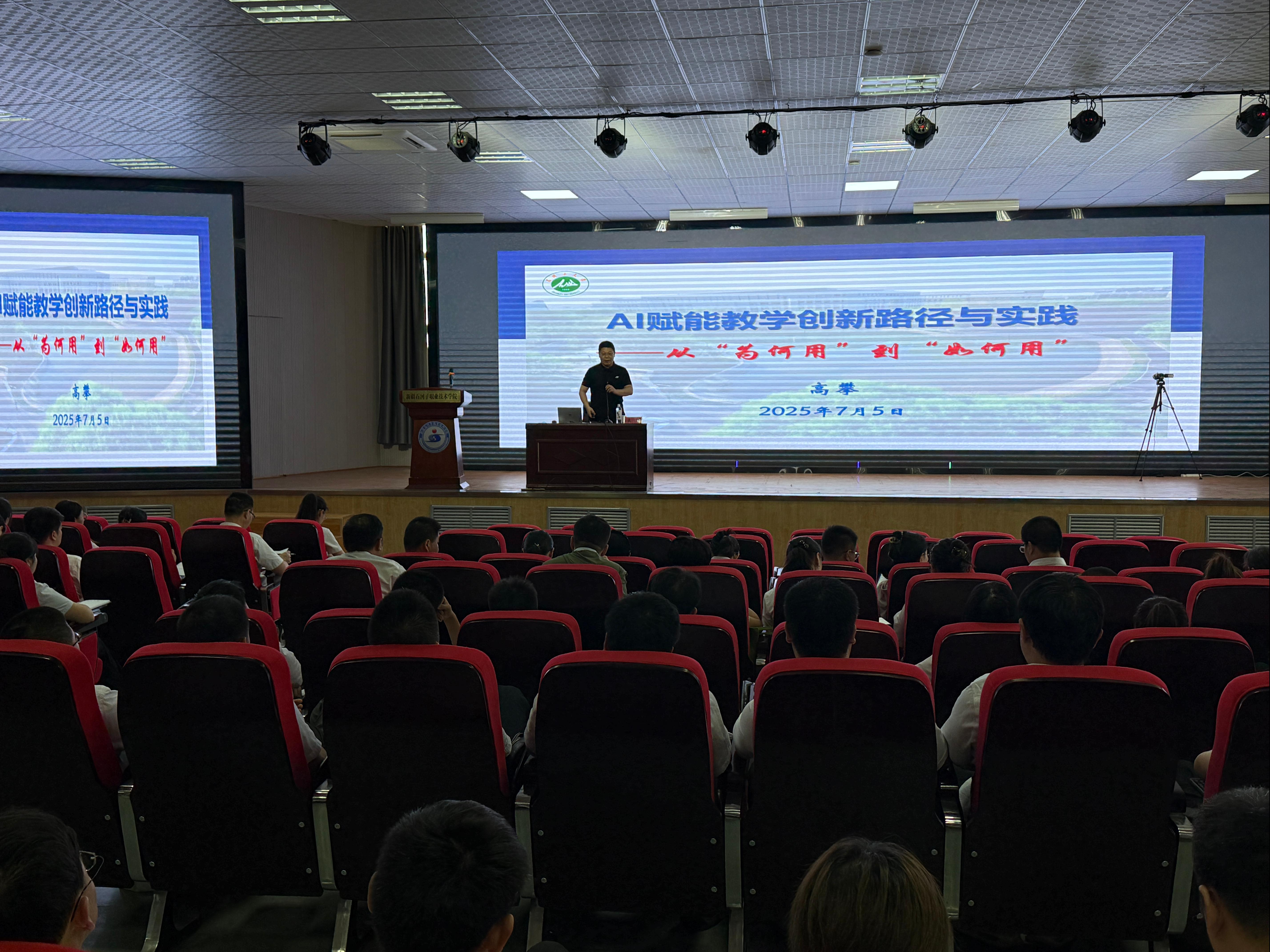此次培训紧密结合学院实际情况,分三阶段有序开展,分别为全体教师集中培训、实验实训室仪器设备使用培训及进企业实践。集中培训紧扣教育教学实际需求,内容精准聚焦核心能力建设,设置了“师德师风培训”“强化网络安全意识筑牢网络安全防线”“公开课展示:《直播电商——数字人直播》”“学生管理”“校园法治安全培训”“职业本科的管理转型”“人工智能在教育教学中的应用”等专题。培训内容兼具前沿性与实用性,现场学习氛围十分浓厚。