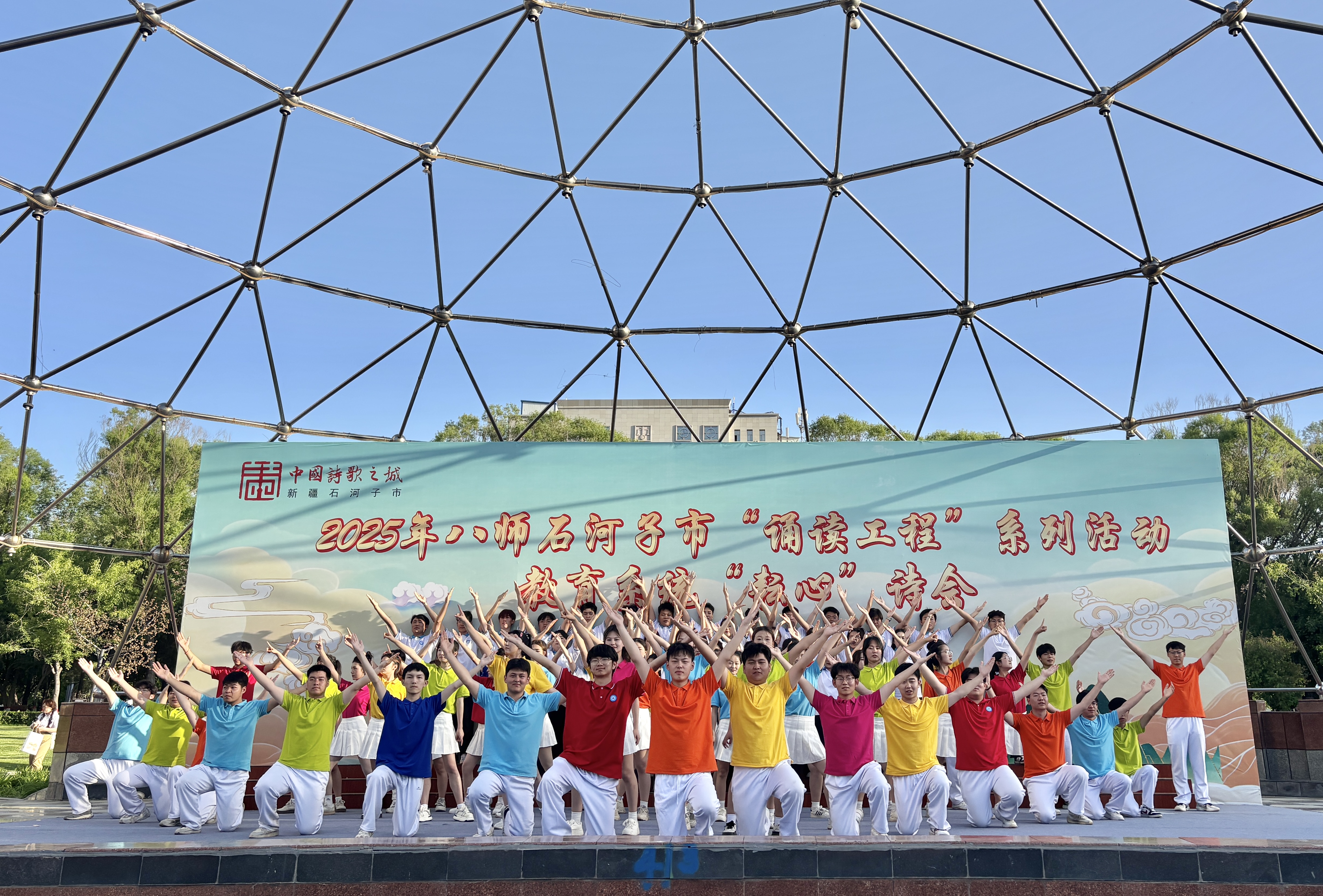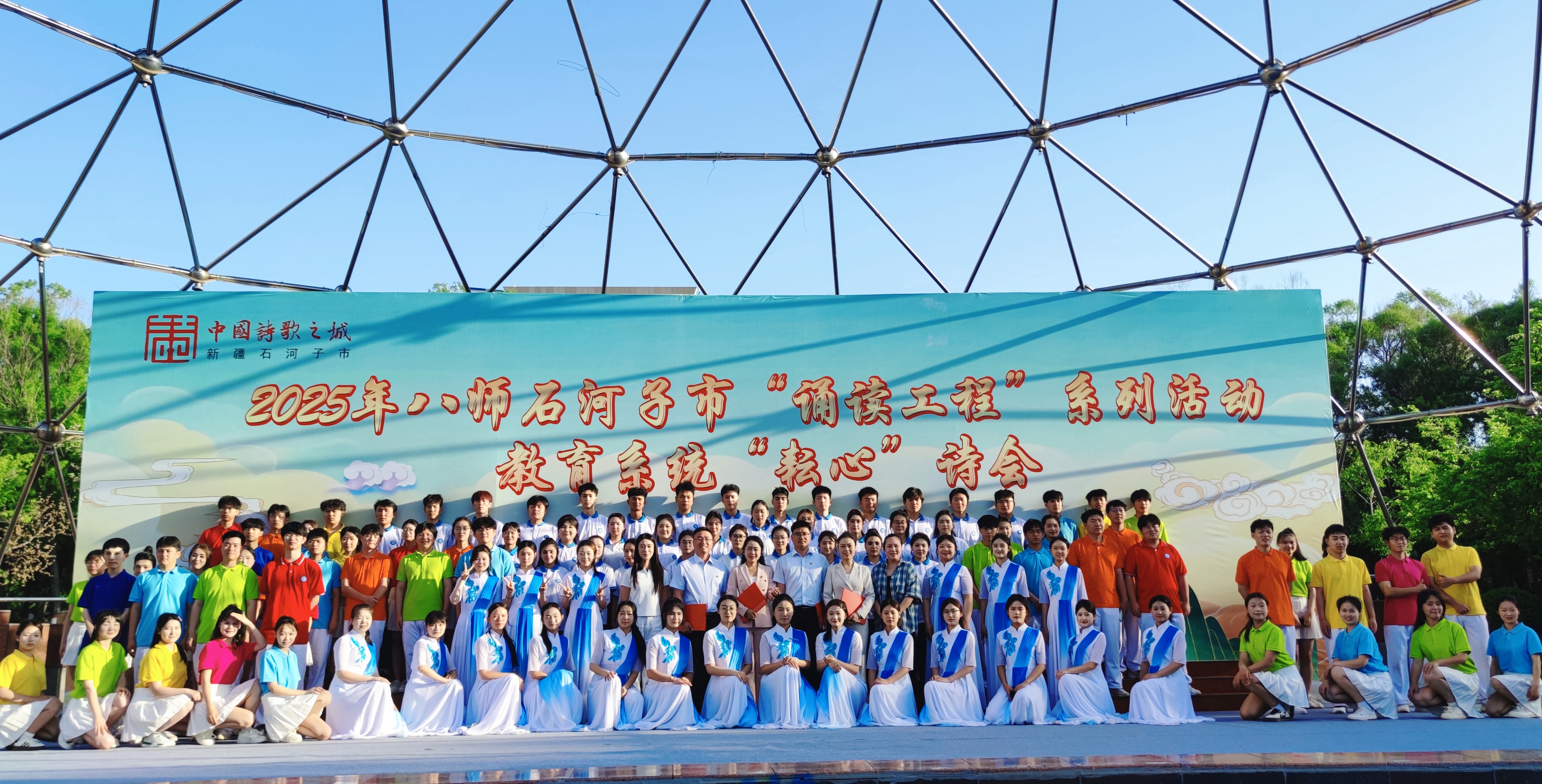 (黎丽 刘若冰报道)5月9日晚,2025年八师石河子市教育系统“耘心”诗会在石河子音乐广场举行。beat365唯一官方网站组织4名教师领诵、102名多民族学生共同演绎原创作品《兵团礼赞》,以朗诵结合舞蹈的形式,展现石河子从荒原到绿洲的变迁历程,诠释兵团精神。