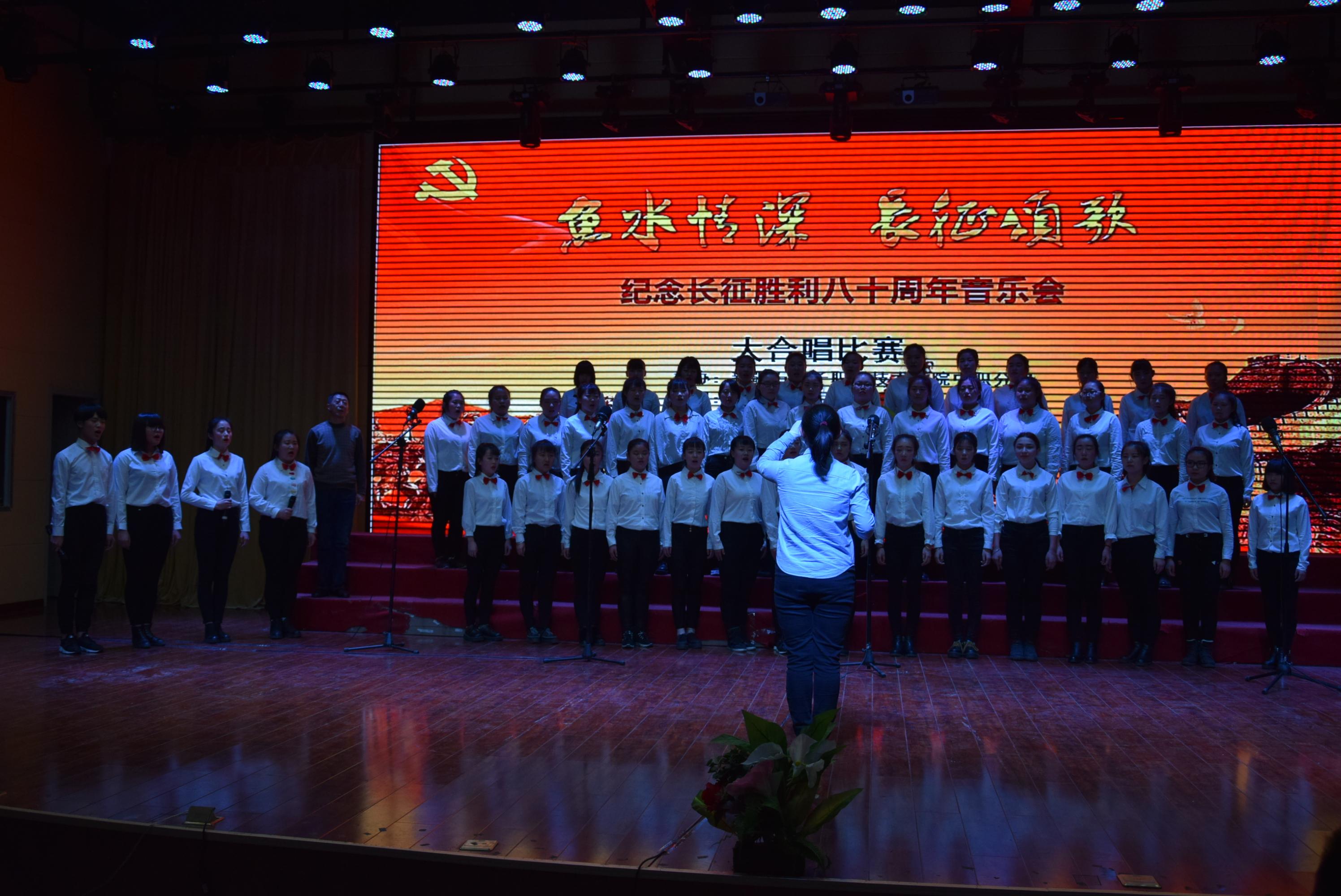 beat365唯一官方网站中职分院为隆重纪念红军长征胜利80周年,让师生深刻体会坚定理想信念、不怕困难、艰苦奋斗的革命传统,激发全校师生的参与热情, 12月15日下午,在综合楼四楼学术报告厅举行了“纪念长征胜利八十周年”大合唱比赛。