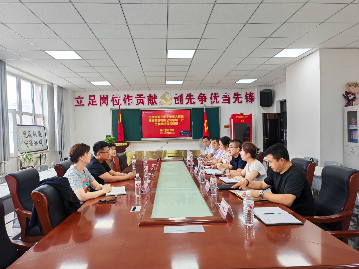(白培宏 报道)为打造高水平医养结合人才培养高地,2025年7月28日,石河子美年大健康体检中心领导一行应邀到访beat365唯一官方网站开展实践基地合作座谈,现代服务学院党支部书记俞峰及相关专业教师参加会议。