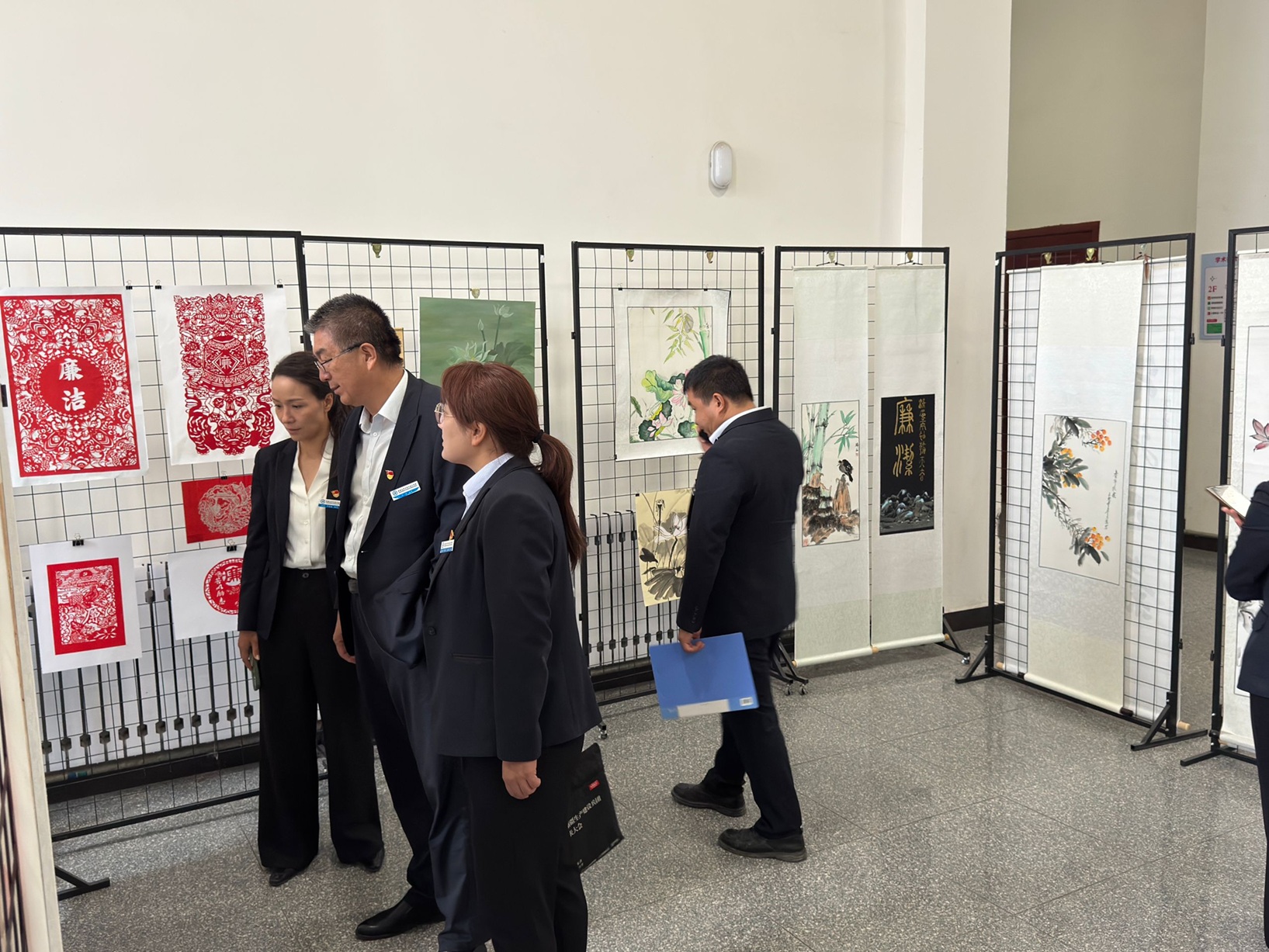 (王改东 报道)为进一步加强校园廉洁文化建设,营造风清气正的育人环境,2025年9月3日,beat365唯一官方网站纪委举办“诗墨书廉纪·新规践初心”廉政文化主题作品展。学院党委书记史文革、党委班子成员、纪委委员、中层干部及骨干教师代表共同参加活动。本次活动由纪委书记万祥军主持。
