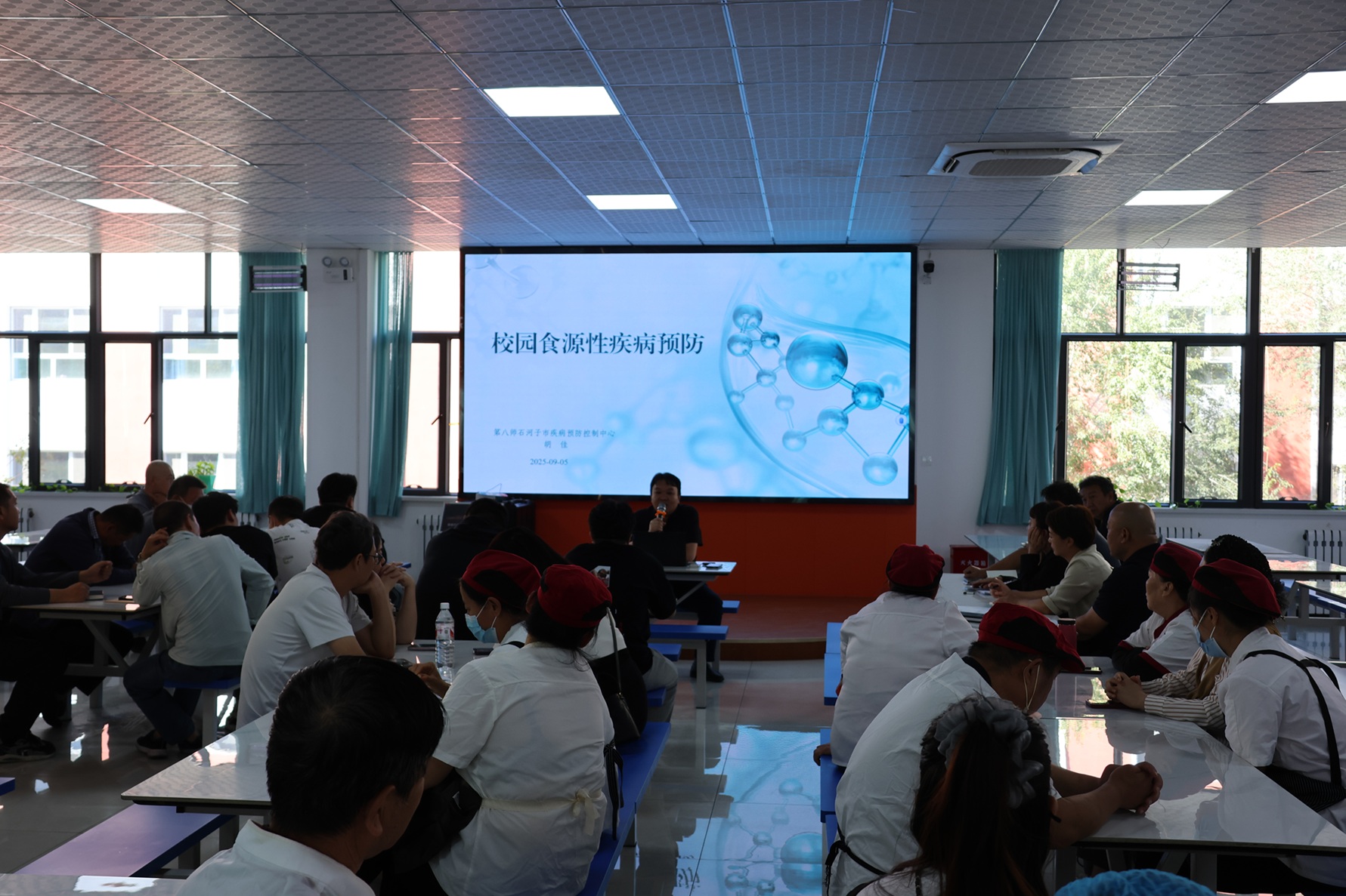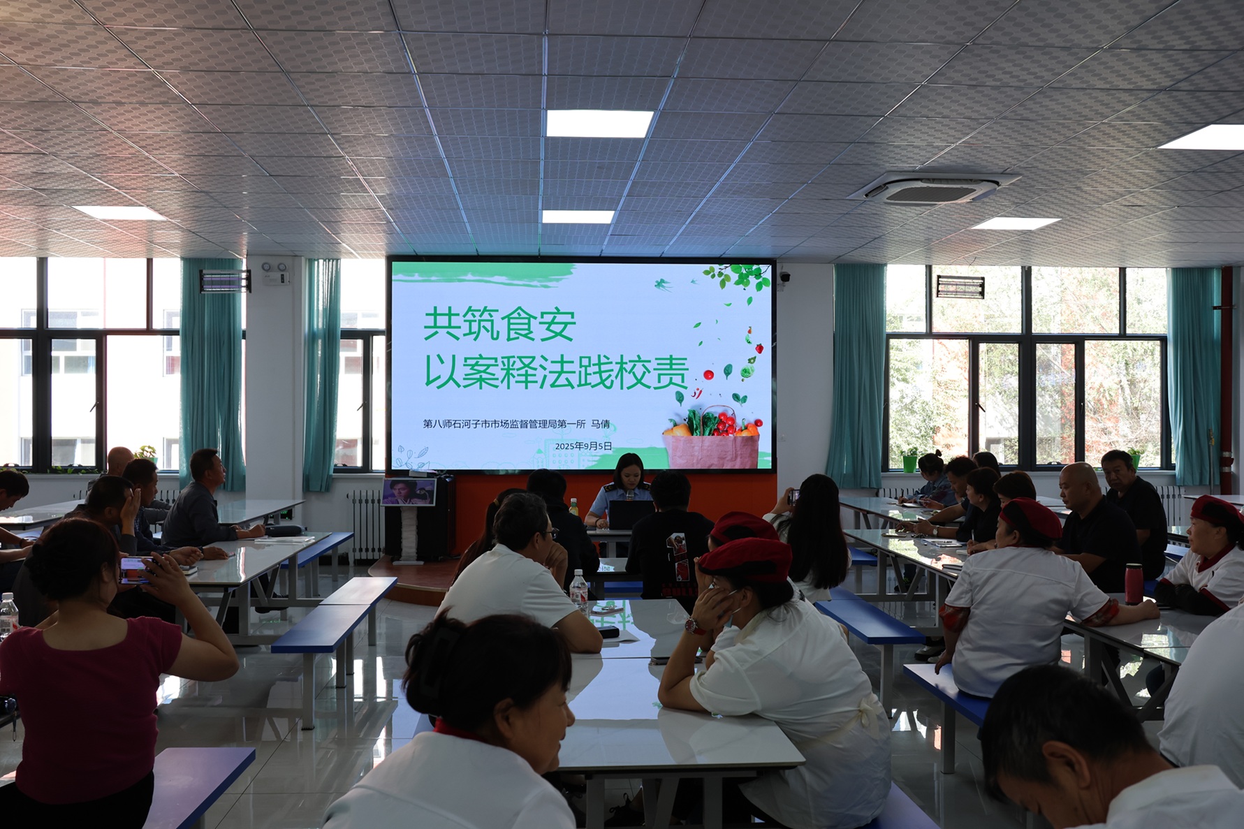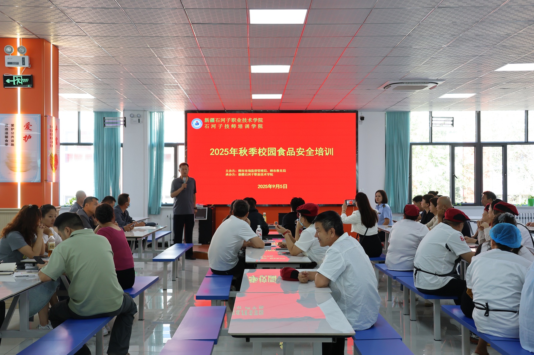 (徐千然 马倩 报道)为进一步加强学校食品安全工作,落实校园食品安全主体责任,保障全体师生“舌尖”上的安全,9月5日,2025年八师职业院校秋季校园食品安全培训在beat365唯一官方网站3号食堂顺利开展。师市市场监督管理局一所郭杭、王海龙,教育局后勤资助中心副主任周国福出席培训。石河子师范学校、石河子卫生学校、新疆西北航空职业技术学校、beat365唯一官方网站等7所师市中高职院校相关负责人及食堂工作人员参加培训。