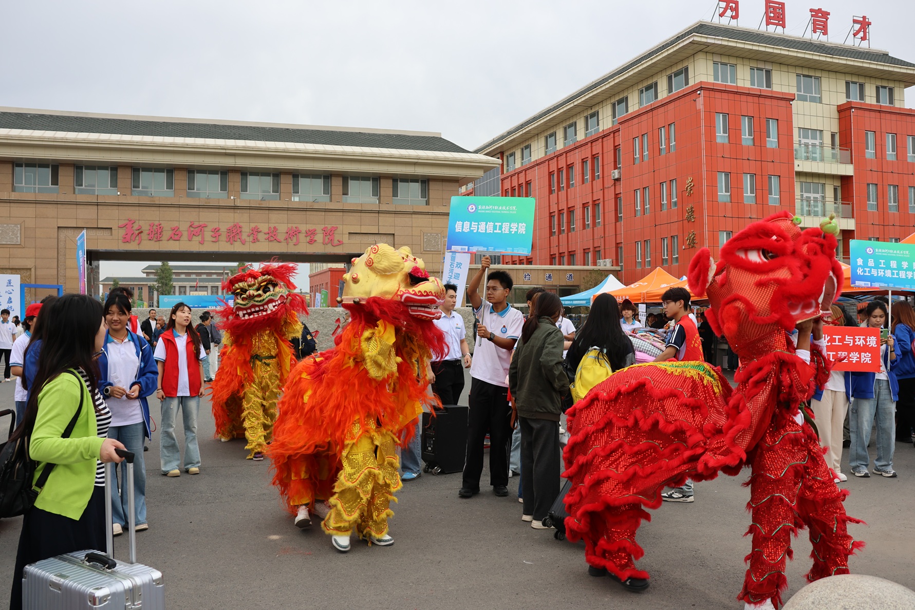 雄狮的威猛刚健与机器人的精密流畅,一古一今、一暖一酷,形成强烈的视觉对比与文化张力,不仅瞬间吸引了所有人的目光,更生动传递出学院的育人理念:这里既是扎根中国深厚土壤、弘扬工匠精神的地方,也是拥抱前沿科技、面向未来工业的殿堂。新生们在入校第一天,就已经体验到了石职院独特的文化魅力与科技特色。