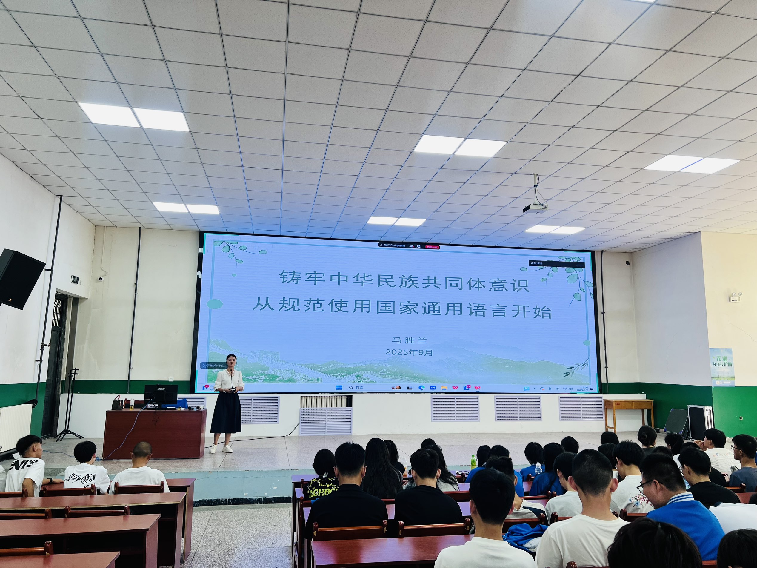 语文教研室构建“课堂+第二课堂”双轨模式,打造“分层化、趣味化”推普课程体系:马胜兰老师开设《铸牢中华民族共同体意识,从规范使用国家通用语言开始》开学第一课,解读推普意义;曾小凌老师设计“这些词你读对了吗”趣味语音测试,通过字词辨析、多音字朗读提升学生语音规范能力;张艺婷老师开展普通话水平测试专项训练,夯实学生语言基础;郭慧慧老师结合《诗歌》教学传授朗诵技巧,展现语言魅力;王雪纯、邓亚昕老师聚焦少数民族学生,开展“一对一”辅导,强化“听、说、读、写”能力,助力其融入校园。