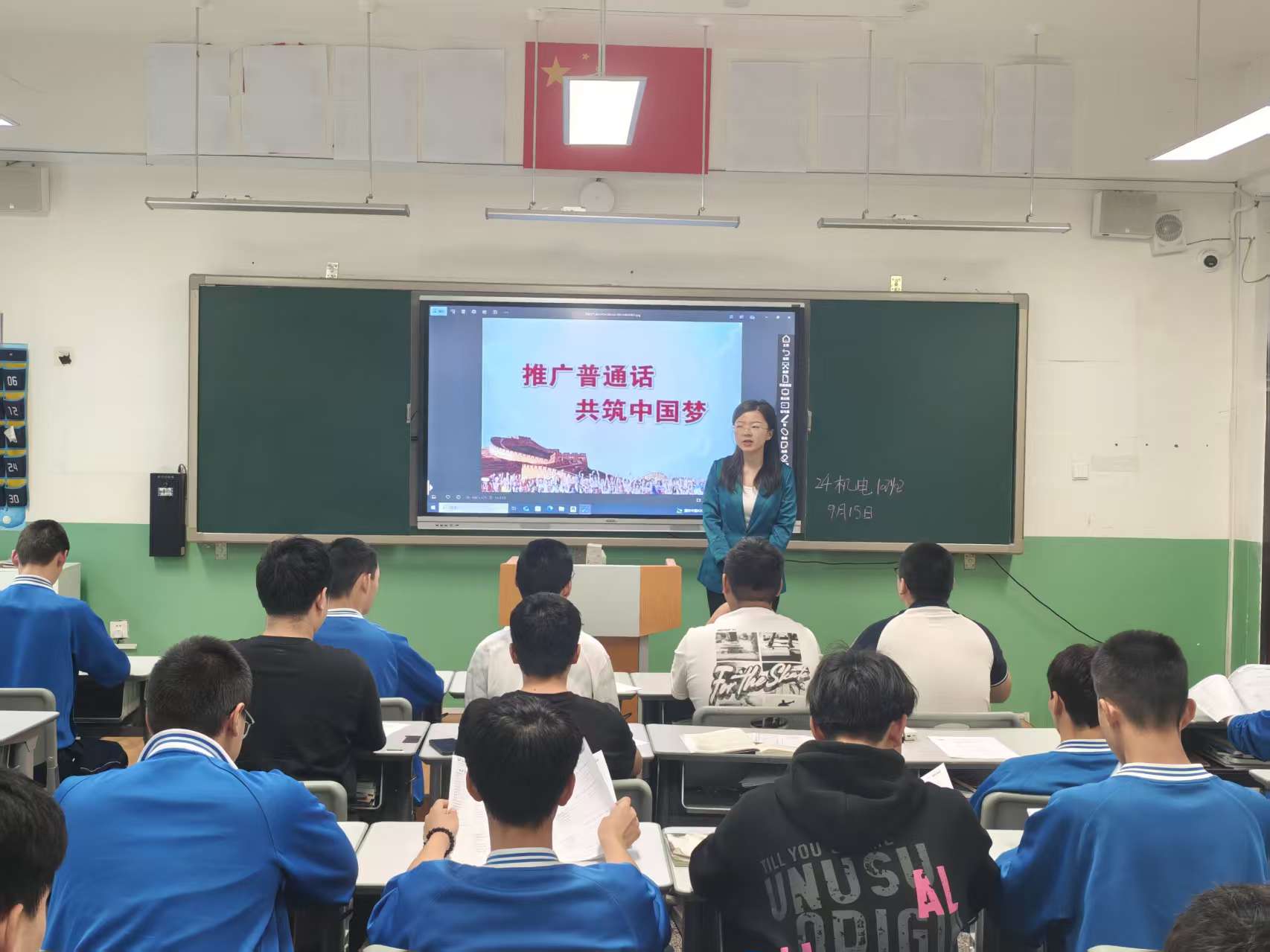 各班级以“推广普通话,共筑团结梦”为主题,陆续开展班会研讨与黑板报评比活动。班会中,学生通过分享普通话使用小故事、模拟日常交流场景等形式,主动学习语言规范知识;黑板报则以图文并茂的方式呈现推普意义、汉字规范写法等内容,成为校园里一道鲜活的“语言文化风景线”,有效提升了学生的语言规范意识。