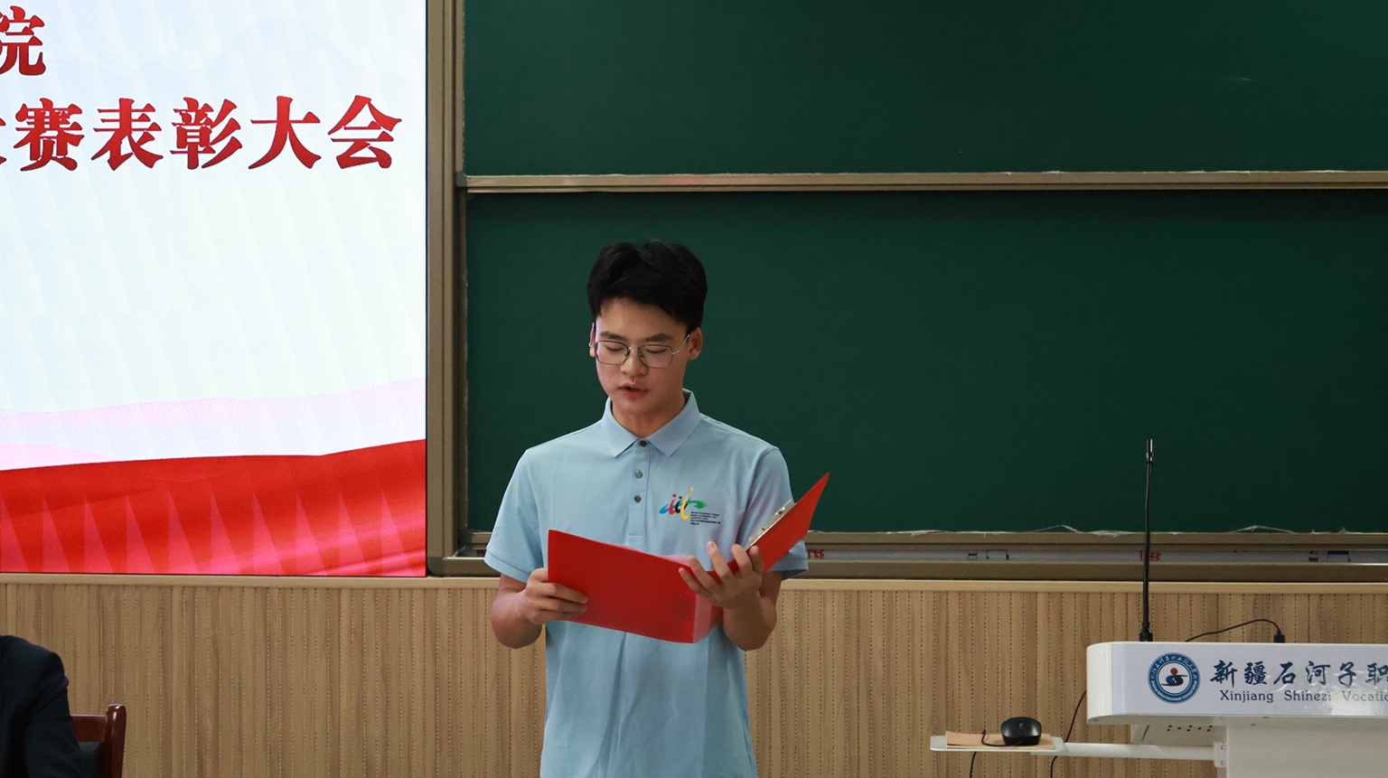 会上,张婷院长向与会师生介绍了学院在本届世界职业院校技能大赛中的参赛及获奖情况,回顾了学院师生在备赛和竞赛过程中的努力与成果,对取得的成绩给予了肯定。颁奖环节,水利建筑工程学院领导为获奖教师颁发荣誉证书,向他们在赛事中取得的优异成绩表示热烈祝贺,并鼓励全体教师以获奖教师为榜样,将大赛积累的经验反哺于日常教学与科研工作中。在经验分享中,获奖团队指导教师代表牟青贺上台发言,牟老师分享了指导参赛的心路历程与宝贵经验,并表示未来将继续坚守在人才培养一线,为学生成长成才保驾护航。参赛选手代表胡珍珠同学则从学生视角出发,回顾了备赛、参赛过程中的挑战与收获,鼓励在场的新同学们珍惜学院提供的实践学习平台,积极投身技能实践,不断向更高的技能水平迈进。