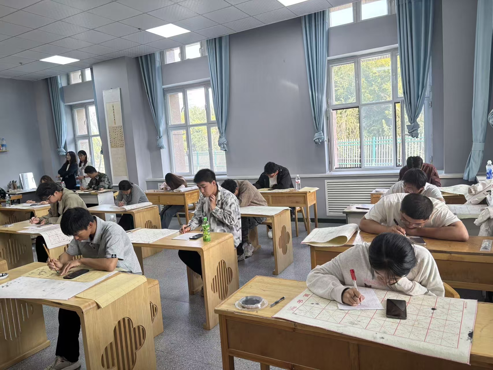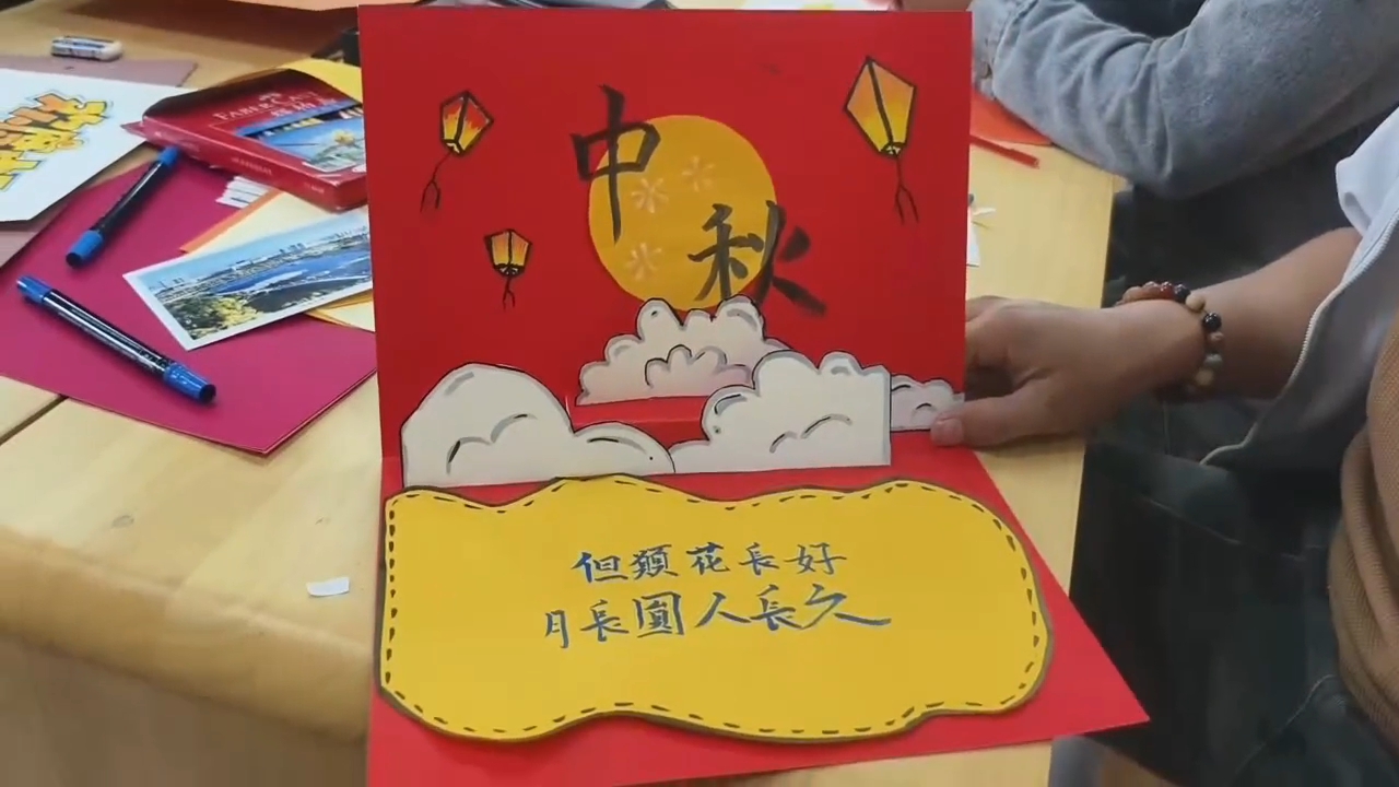 10月1日至5日,学院各学生社团纷纷亮出绝活,推出各具特色的文化活动,形成了一场精彩纷呈的传统文化体验接力:墨攻书法社的“翰墨寄情”软笔书法体验活动现场,同学们挥毫泼墨,将对远方亲人的思念与对祖国繁荣昌盛的美好祝福,一笔一划融入浓郁的墨香之中;就业社开展的“明月千里寄相思”节日贺卡制作活动,让同学们动手动脑,将真挚的情感与创意倾注于一张张精心制作的中秋贺卡;足球社组织的八人制足球比赛在绿茵场上激情上演,展现了学子们昂扬向上的青春活力与拼搏精神;建筑信息模拟社举办的中秋猜灯谜活动将传统灯谜与现代科技知识巧妙结合,学生们在在智慧的碰撞中充分感受传统文化的魅力。
