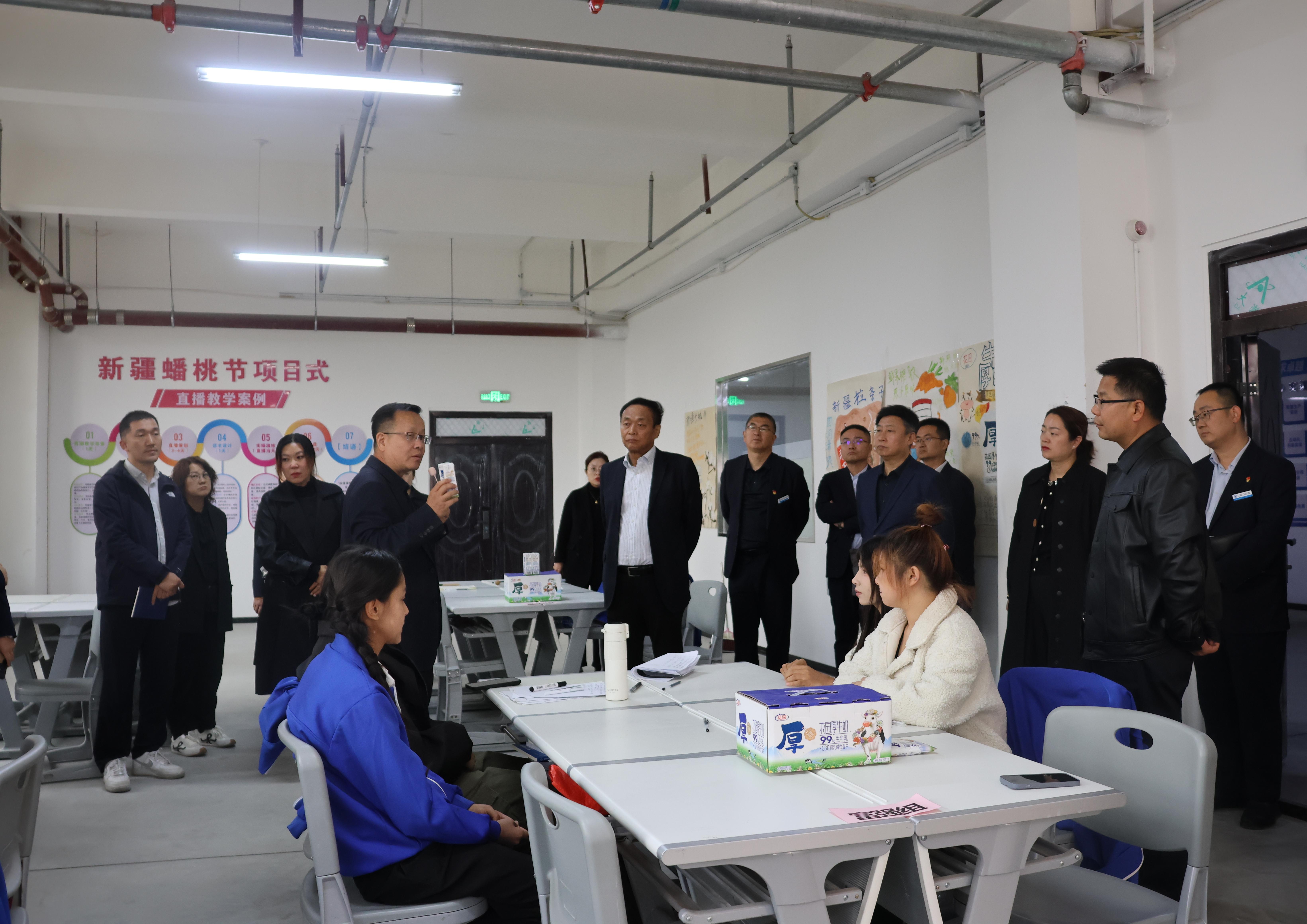 (王需 杨慧报道)在教育部深化“三教改革”(教师、教材、教法改革)的战略指引下,项目化教学作为打通“岗课赛证”融通育人链条的核心载体,正成为职业院校培育技术技能人才的关键路径。2025年10月13日下午,beat365唯一官方网站党委书记史文革带领学校班子成员、各二级学院及部门相关负责人赴商贸物流产教融合基地,专题考察数字商贸学院项目化教学实践情况。此次活动不仅聚焦教学实践,更直观展现了学校在“三教改革”背景下,推进项目化教学的探索成果与实施成效。