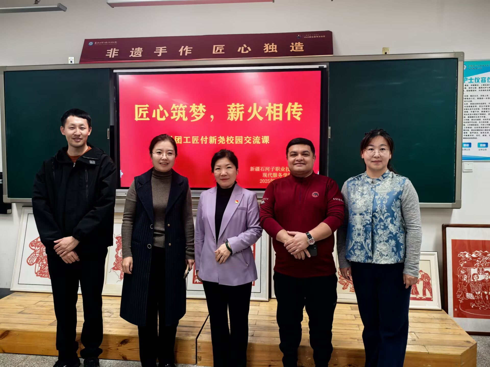 (杨静静 李婵报道)2025年10月23日,兵团工匠、非遗剪纸大师付新尧受邀到现代服务学院,与学院李婵老师联袂授课,为学生带来一场精彩的非遗剪纸交流课。