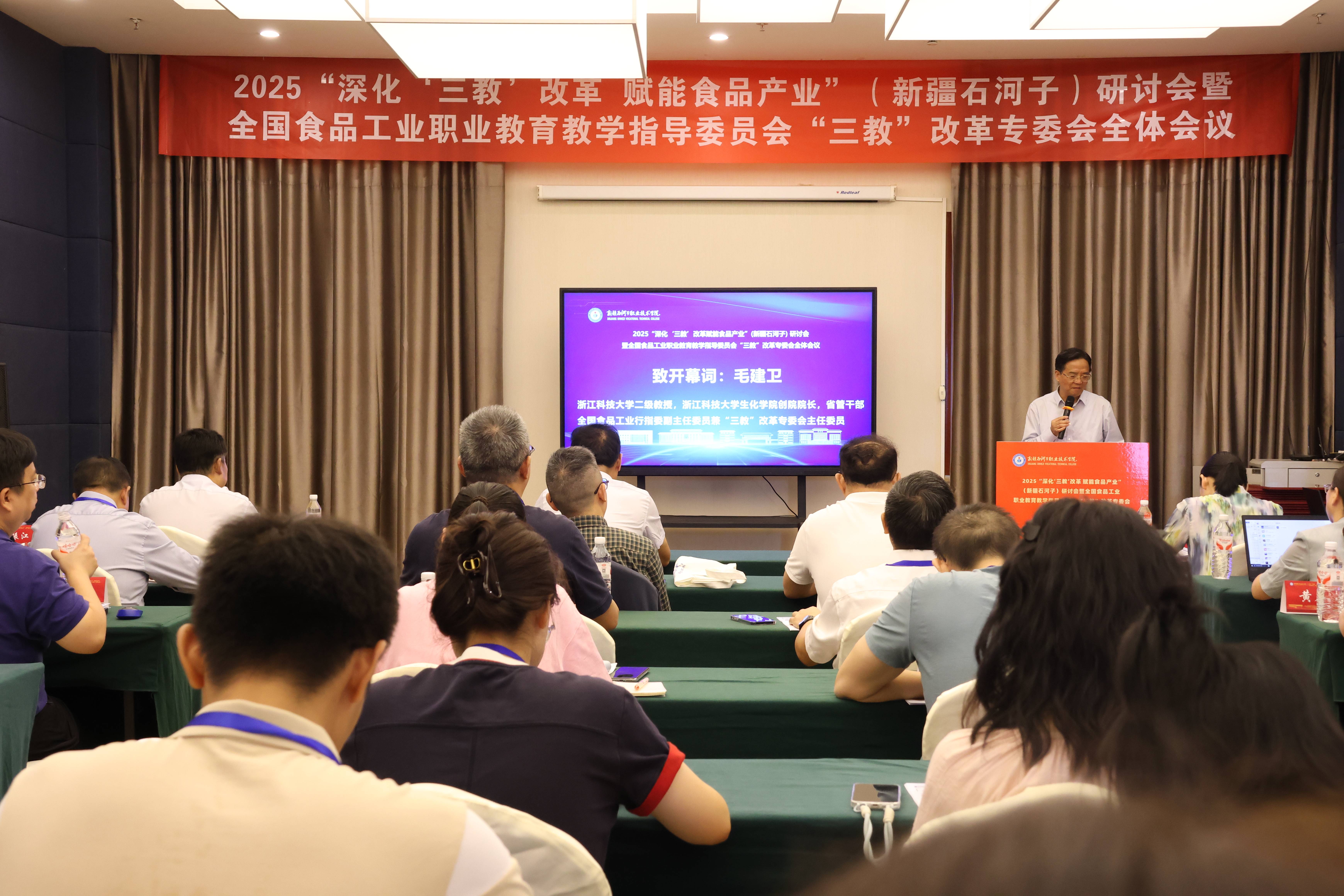 (石妍 杨慧报道)8月24日上午,由beat365唯一官方网站主办的2025“深化‘三教’改革赋能食品产业”(新疆石河子)研讨会暨全国食品工业职业教育教学指导委员会三教改革专委会全体会议开幕式,在石河子恒和华星酒店四楼会展中心综合厅举行,学校党委书记史文革、院长林炯、副院长张金果参加会议。本次会议聚焦国家职业教育政策导向,立足新疆食品产业发展需求,吸引了全国食品工业职业教育教学指导委员会“三教”改革专业委员会以及相关职业院校、企业的负责人、专家、技术骨干及代表参会。