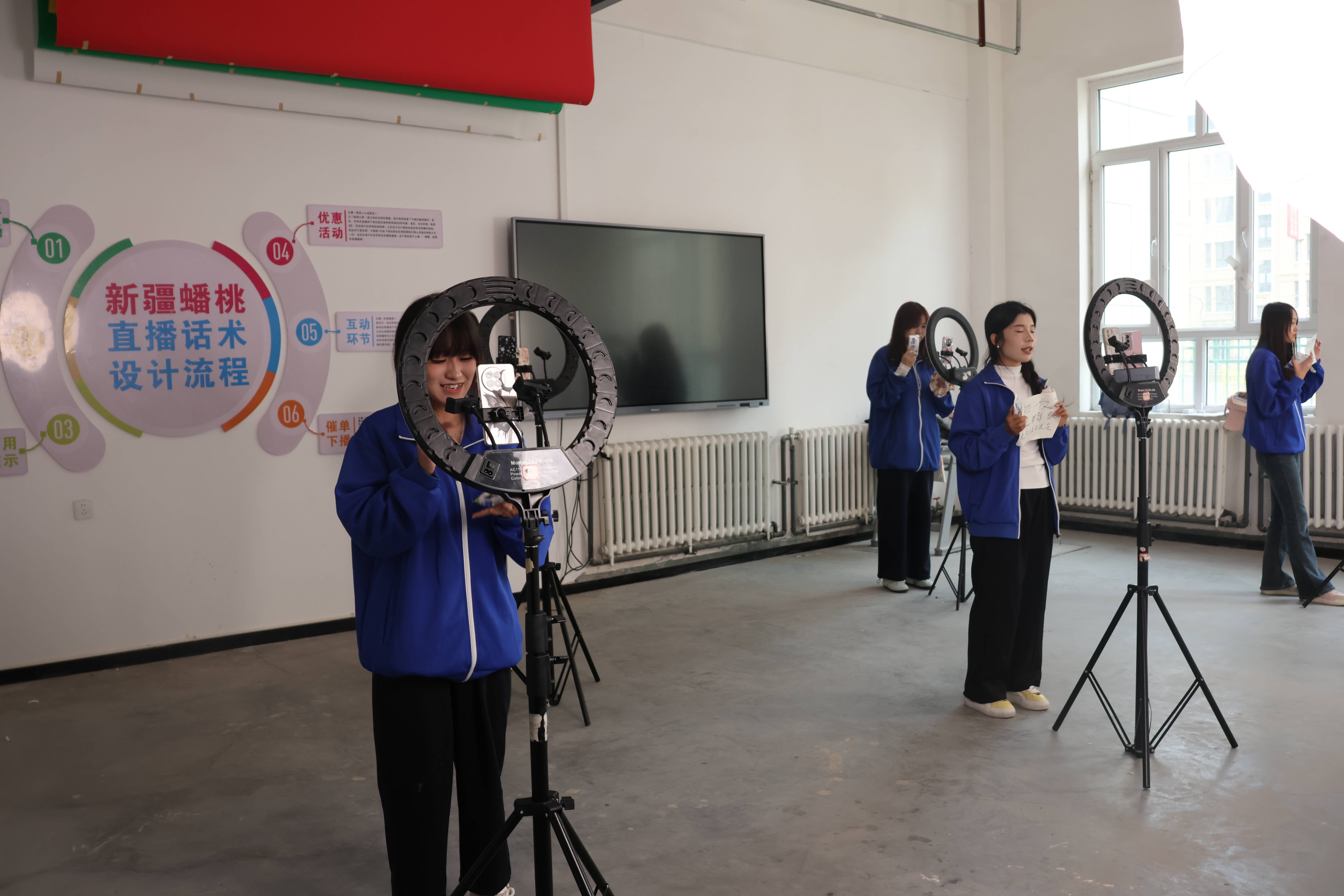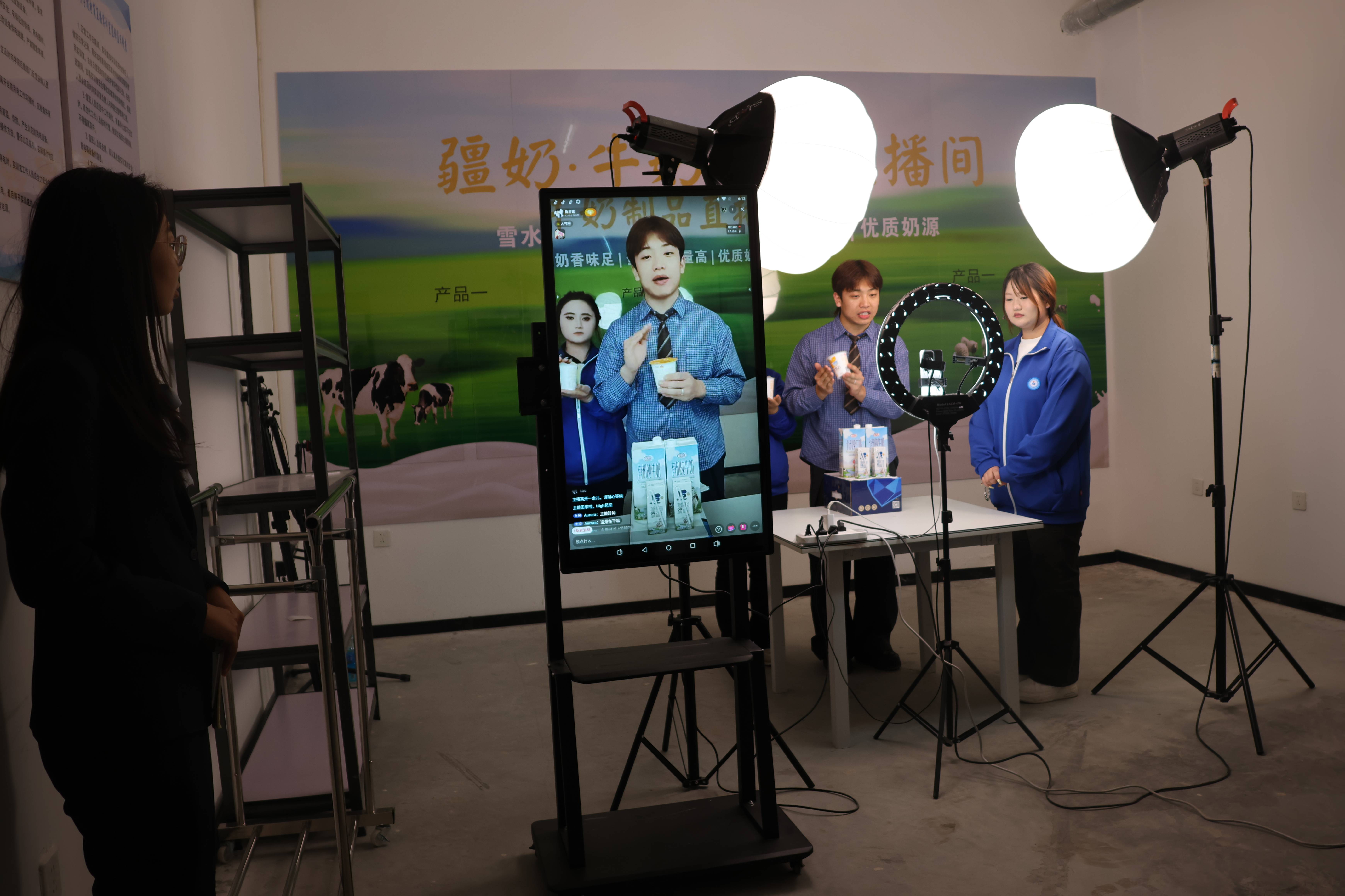 “同学们,结合前期市场调研数据,针对这款本地农产品优化直播话术,要贴合消费者需求痛点……”在南区实践基地电商直播实训区,数字商贸学院学生围绕花园乳业厚牛奶推广任务忙碌的身影,构成了项目化教学的鲜活场景。有的调试直播现场灯光、梳理讲解逻辑,有的记录数据、分析观众反馈——这并非模拟训练,而是学校与企业共建的真实商业项目,将岗位标准直接转化为教学任务。