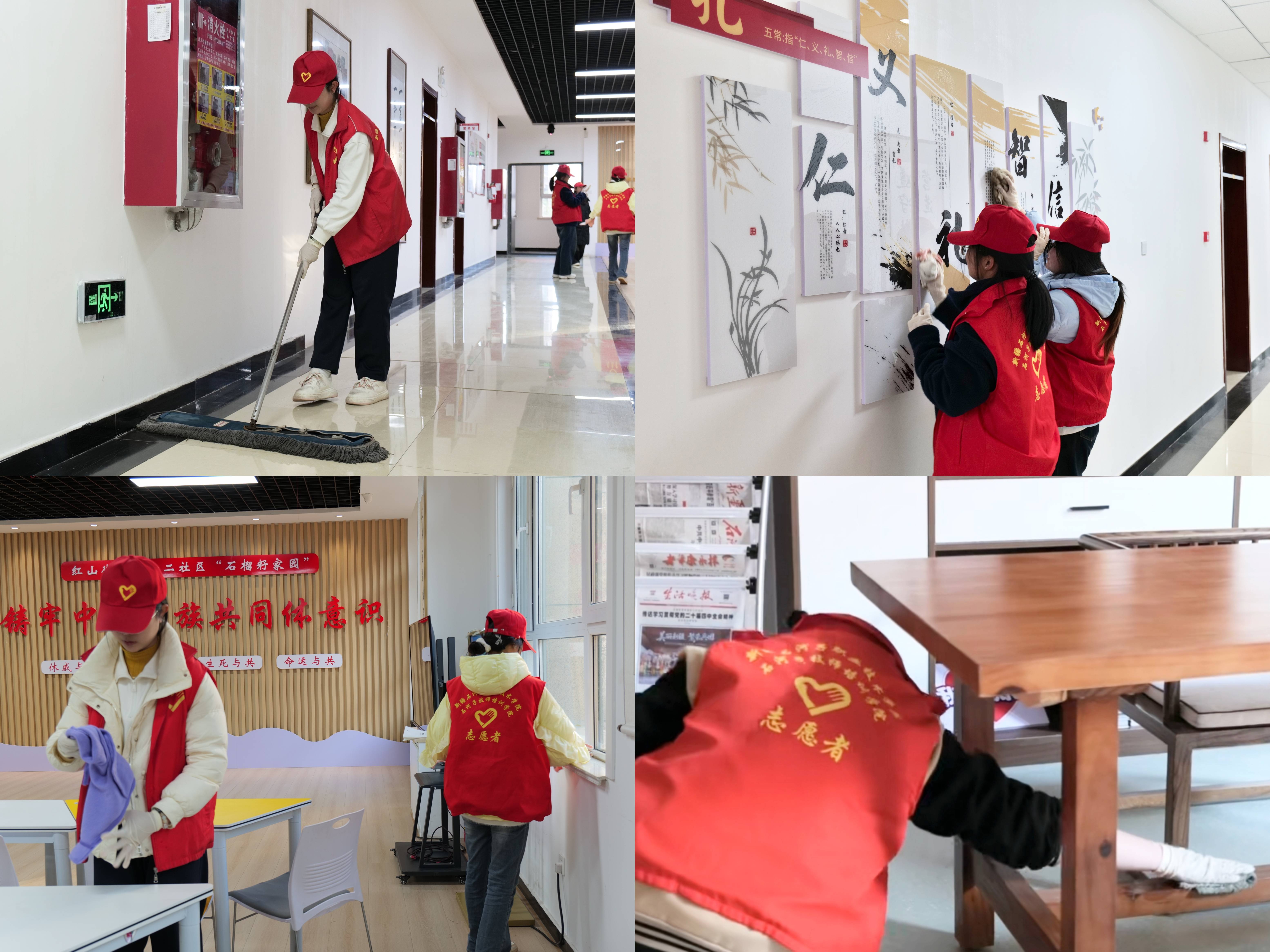 活动中,志愿者们根据任务内容分为社区清洁与仓库整理两个小组。在带队老师的协调下,各小组迅速明确分工,有序前往责任区域投入工作。清洁组队员手持扫帚、抹布等工具,对社区公共区域进行细致清扫,认真擦拭公共设施,不留死角;整理组队员则在社区工作人员的带领下协作配合,将仓库物品分类归置、清理搬运积存物资,优化空间布局。全体同学热情饱满、分工协作,在劳动中展现出不怕脏、不怕累的实干精神。经过大家的共同努力,社区环境变得更加整洁有序,仓库面貌也焕然一新,整体环境得到显著提升。