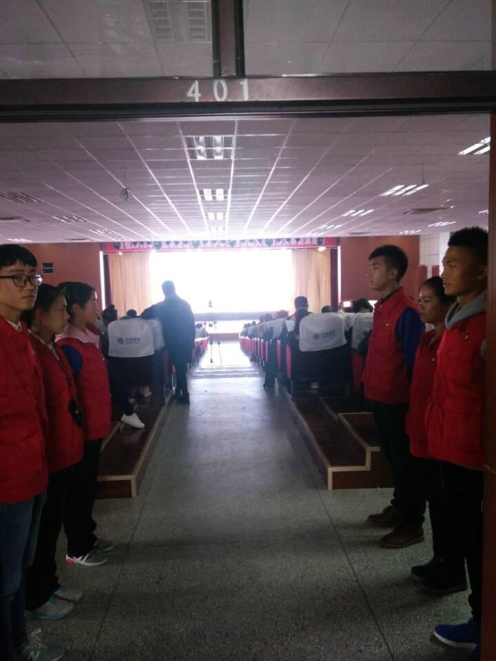 在校门口的接待处,志愿者们站在那里,在这个寒风凛冽的天气中一站就是两三个小时,他们始终面带微笑接待报到的每一位选手。车门一打开,他们急忙跑上前去询问有没有身体不舒服的同学,并给参赛选手送上热水,带领他们去住宿区做好住宿安排,值班室也安排了志愿者,为参赛选手及老师更好的服务。这便是他们的工作。