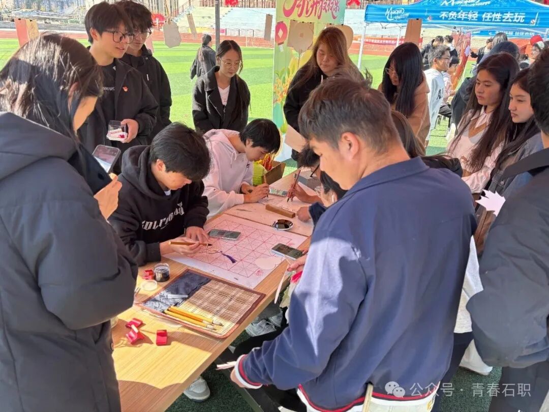 10月1日至5日,学院各学生社团纷纷亮出绝活,推出各具特色的文化活动,形成了一场精彩纷呈的传统文化体验接力:墨攻书法社的“翰墨寄情”软笔书法体验活动现场,同学们挥毫泼墨,将对远方亲人的思念与对祖国繁荣昌盛的美好祝福,一笔一划融入浓郁的墨香之中;就业社开展的“明月千里寄相思”节日贺卡制作活动,让同学们动手动脑,将真挚的情感与创意倾注于一张张精心制作的中秋贺卡;足球社组织的八人制足球比赛在绿茵场上激情上演,展现了学子们昂扬向上的青春活力与拼搏精神;建筑信息模拟社举办的中秋猜灯谜活动将传统灯谜与现代科技知识巧妙结合,学生们在在智慧的碰撞中充分感受传统文化的魅力。