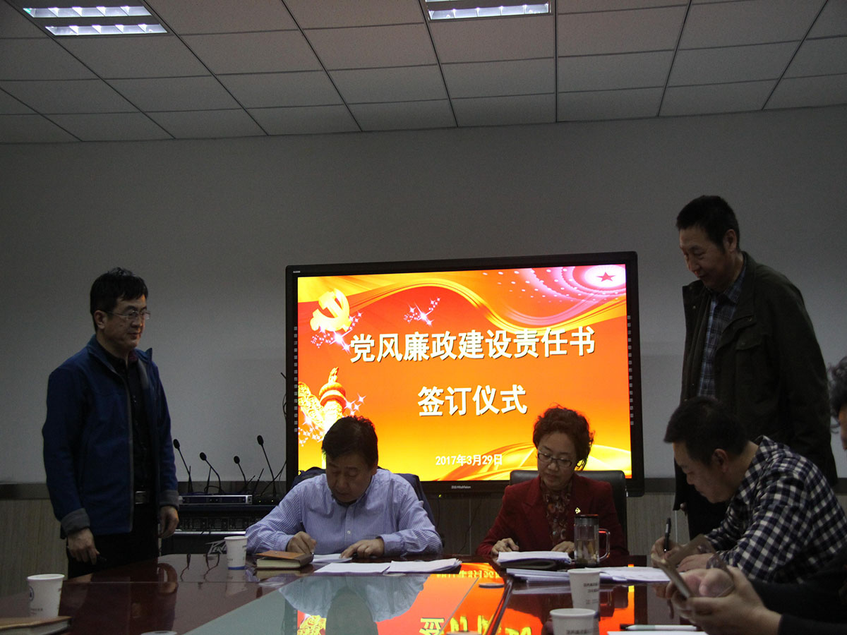 3月29日下午,学院2017年党风廉政建设责任书签订仪式在培训中心四楼第一会议室举行。党委书记陈建丽、院长王敏弦,副院长王华东、管和疆、耿荣、李卫,纪委书记周赞梅及全院中层干部参加会议。