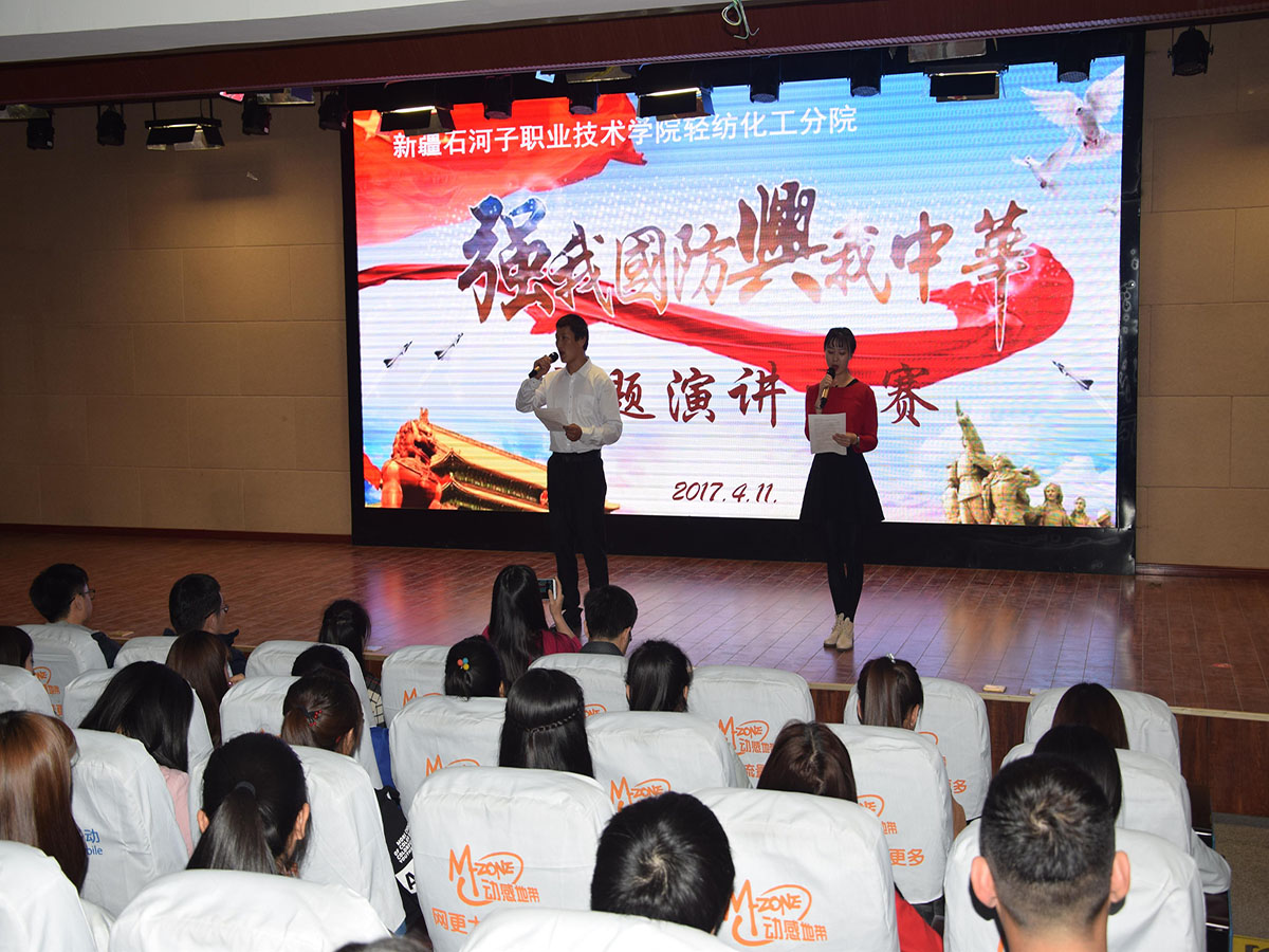 为了树立学生积极参与国防教育的自觉性和责任感,推动国防教育进课堂,2017年4月11日下午,轻纺化工分院学生会主办了以“崇尚英雄,爱我国防”为主题的演讲比赛,分院院长李大鹏、武亮老师、石妍老师、陈长营老师及许阿雪老师担任了本次演讲比赛的评委 。