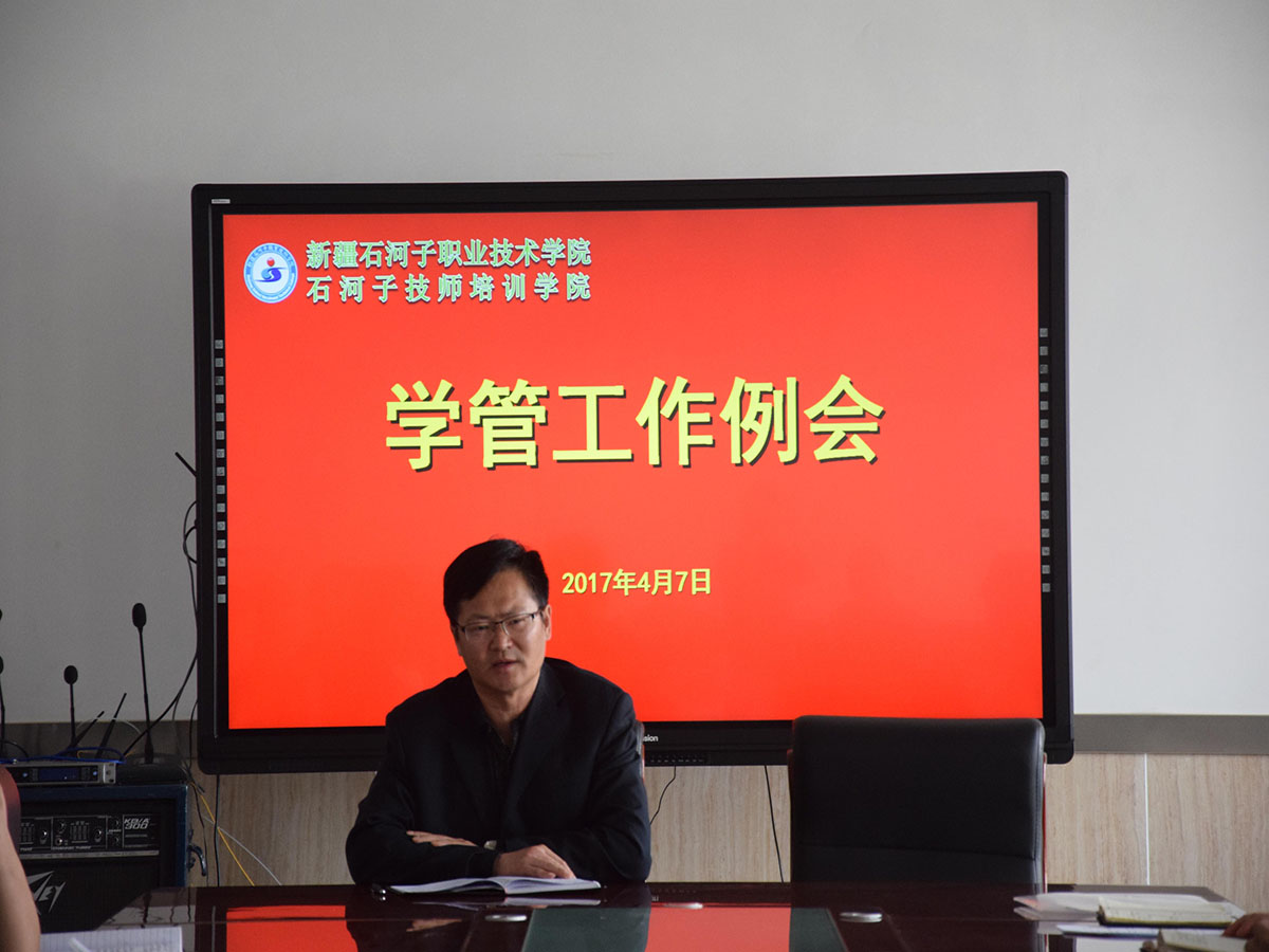 为贯彻落实学院党委的会议精神,加强学生管理,服务学生成长成才,2017年4月7日上午10:30分学院学管工作例会在培训中心四楼第一会议室召开。学院李卫副院长,学生处、团委全体工作人员,各分院主要领导及分院学管工作负责人参加了会议。会议由学生处处长陈峻主持。