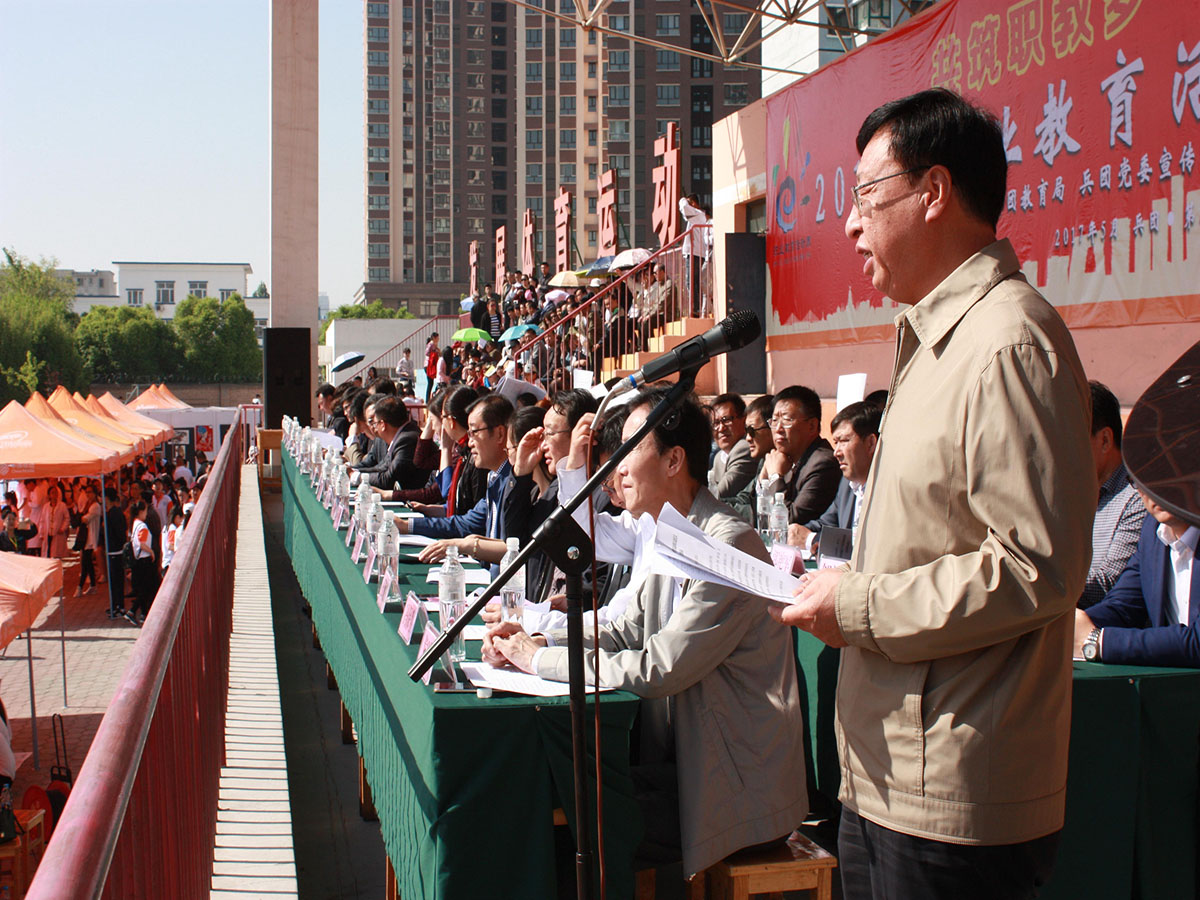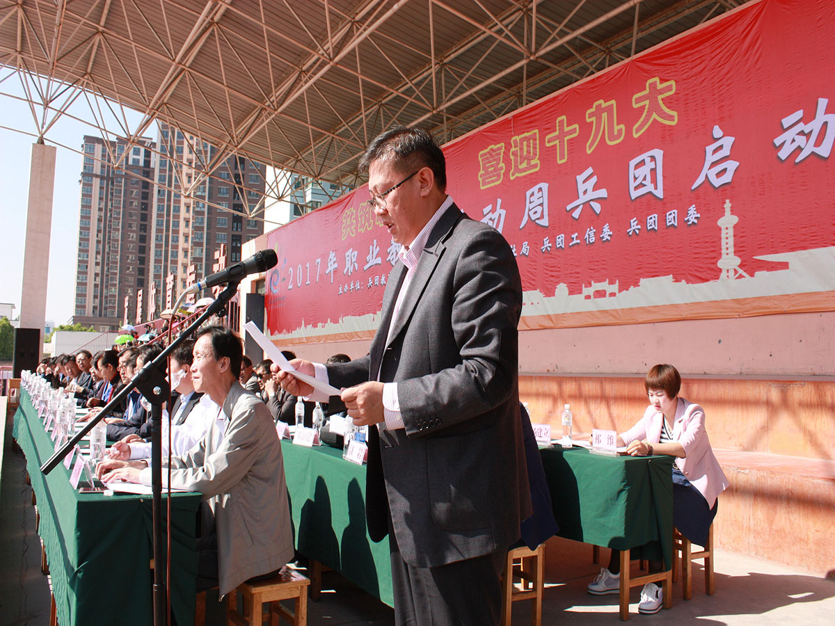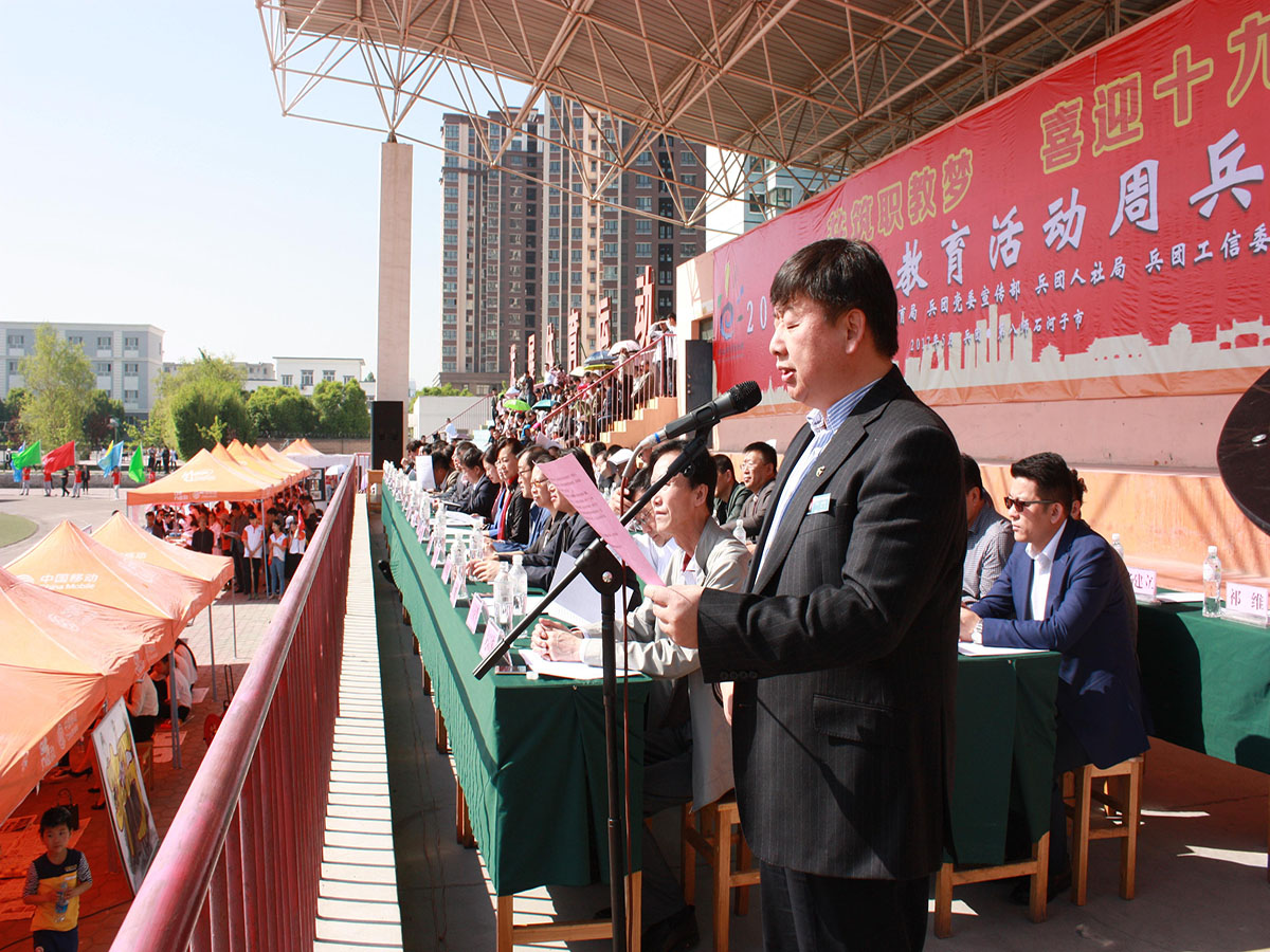 2017年5月6日上午,由兵团教育局主办、beat365唯一官方网站主要承办的兵团第三届职业教育活动周启动仪式在beat365唯一官方网站运动场举行。