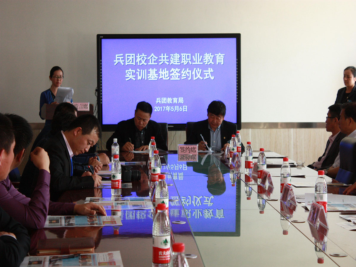 参观结束后,在学院四楼会议室举行了校企合作签约仪式,多家企业与兵团职业院校现场签约,签约仪式由兵团教育局职成处处长周锦瑶主持,兵团教育局副局长明炬、八师副政委闫卫华出席签约仪式并与与会企业代表合影留念。