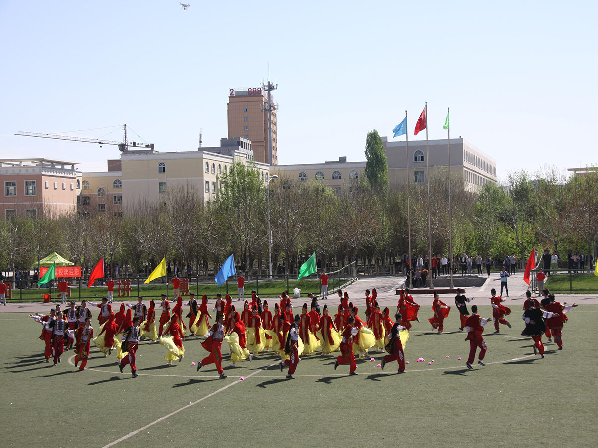 开幕式团体操表演精彩纷呈,花式过桩、极限旋转,展现了926轮滑社同学活力、朝气与自由的精神;古典舞蹈《梅花三弄》体现了中国民族悠久的历史,传承着中华文明的精髓;大型啦啦操音乐在跳动,青春在飞扬;军体拳表演的小伙子们“杀”声响亮、威震四方;民族舞《刀郎麦西来普》反映了维吾尔族人民对美好幸福生活的追求和向往,六十名各民族学生组成的圆圈预示着新疆民族团结一家亲,体现出学院上下紧密团结在以习近平为核心的党中央周围,为实现新疆社会稳定和长治久安,为建设社会主义现代化新疆贡献力量!