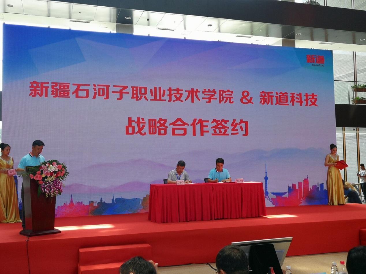 为更好的贯彻落实党的十八大关于加强创新创业人才培养的战略部署,深入落实兵团关于大众创业,万众创新深化创新创业教育改革,5月20日,在北京新道科技股份有限公司“创新拥抱未来,新道科技六周年客户服务升级年会”上,王华东副院长代表学院签署战略合作框架协议。