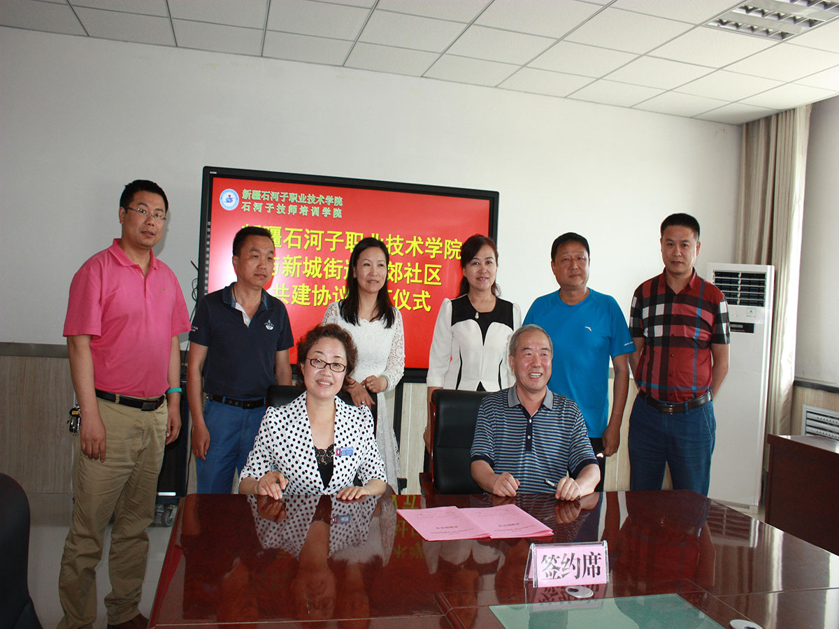 仪式上,社区靳启昌书记和学院陈建丽书记签订了2017年共建协议书。