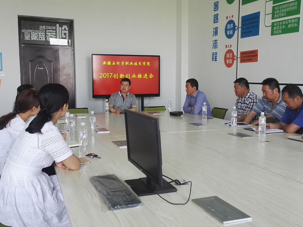 为响应国家“大众创业、万众创新”口号,进一步激发学院大学生创新创业热情,推进学院创新创业工作,5月25日上午,学院在综合楼三楼303室(创客路演室)召开学院2017年创新创业工作推进会,副院长王华东,学工处处长杨涵及各分院领导和创新创业工作负责人参加会议。