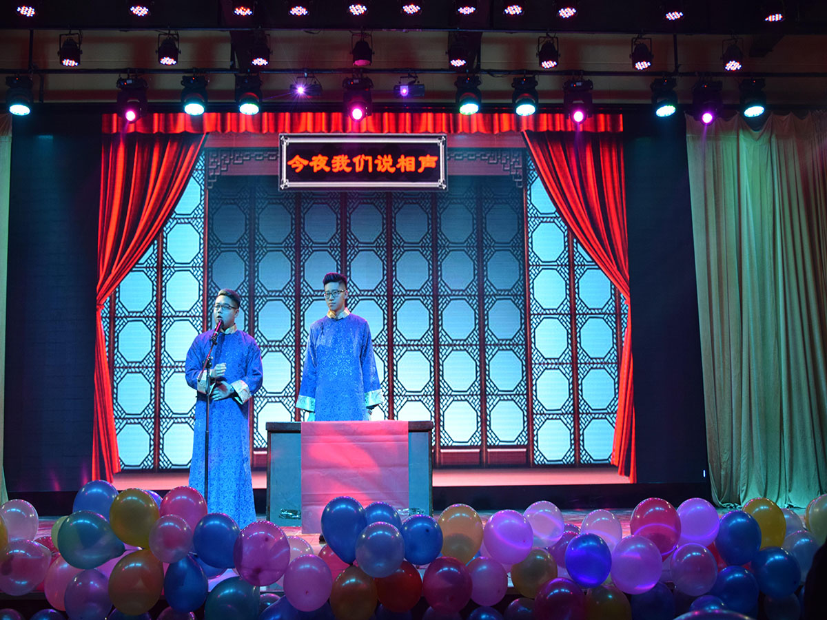 晚会由街舞社表演的活力四溢的《DC Breaking》开场,使晚会迅速升温,接下来的相声《今晚我们说相声》和小品《禁毒班会》幽默诙谐的语言,夸张搞笑的动作,更是亮点十足,赢得观众阵阵掌声的同时也让大家受到了教育。传统经典舞蹈《黑走马》由学校少数民族同学精彩演绎,让大家欣赏了民族舞蹈同时也看到了同学们之间的民族情谊。
