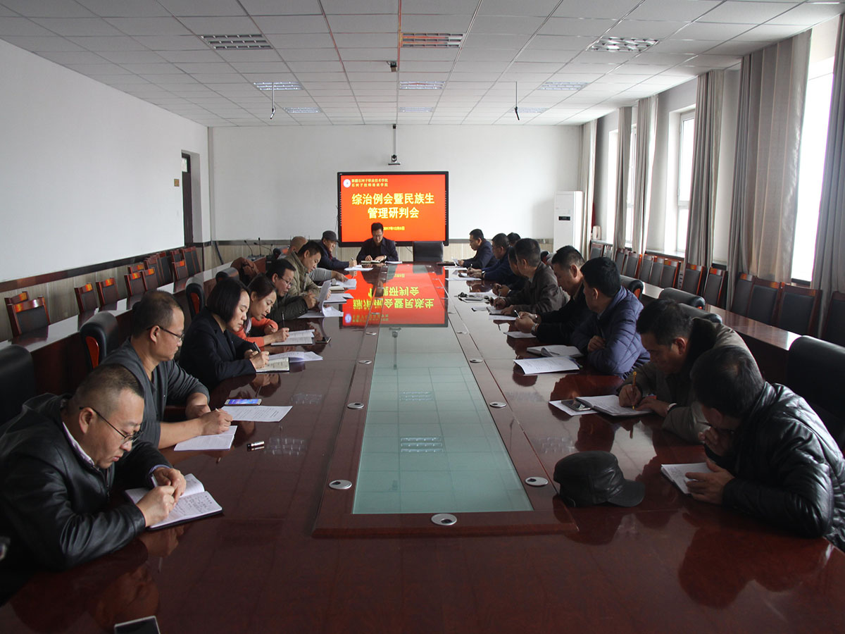2017年12月5日下午4点,学院在培训楼第一会议室召开综治例会暨民族学生管理研判会。学院副院长李卫、保卫处、各分院书记及学管干事参加了会议。会议由保卫处长党博文主持。