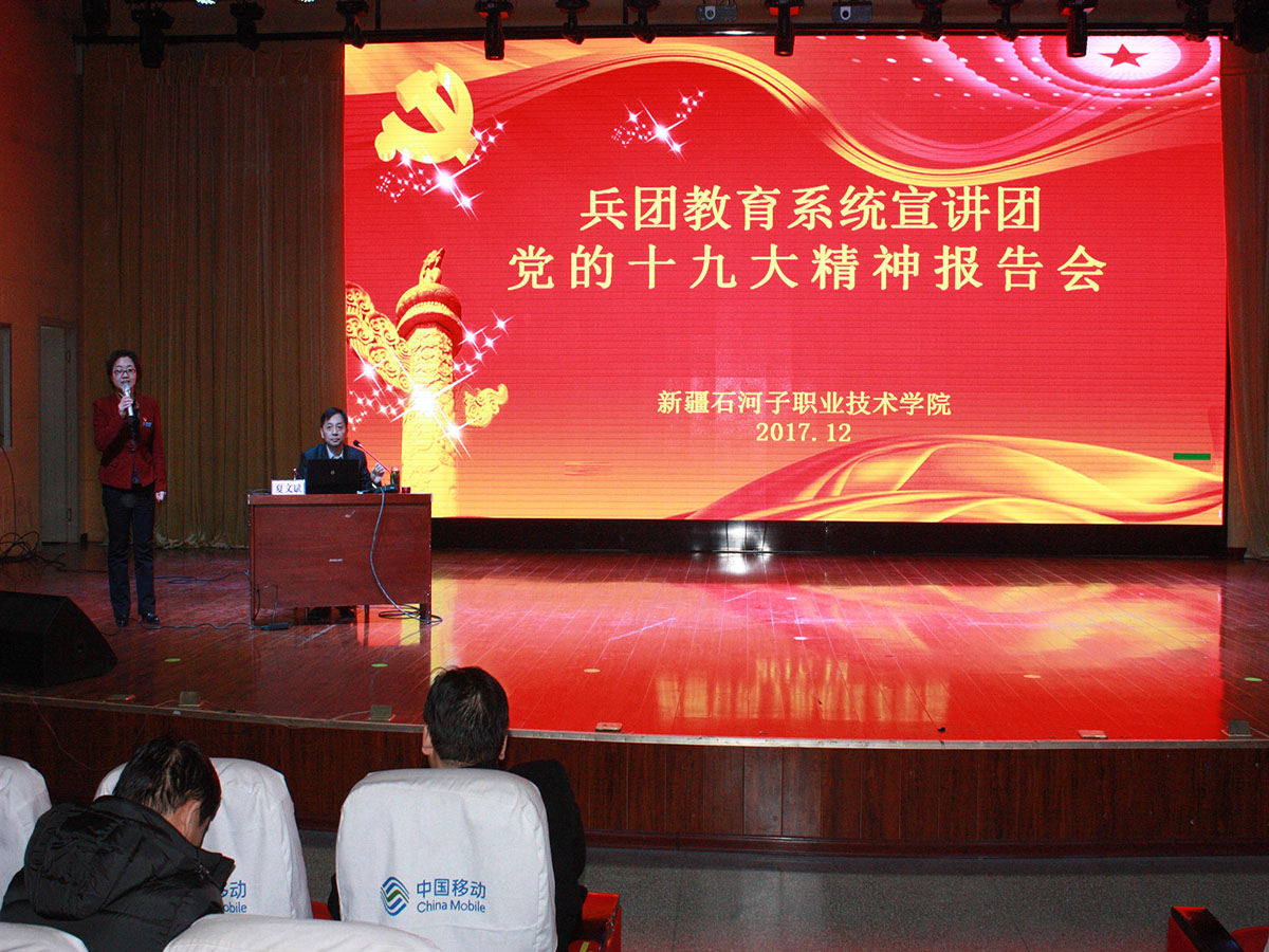 12月19日下午,兵团教育系统党的十九大精神宣讲团成员、石河子大学党委副书记夏文斌莅临学院为全体教职工作《不忘初心,牢记使命》宣讲报告,引领教师先学一步、学深一步,推动十九大精神进课堂。