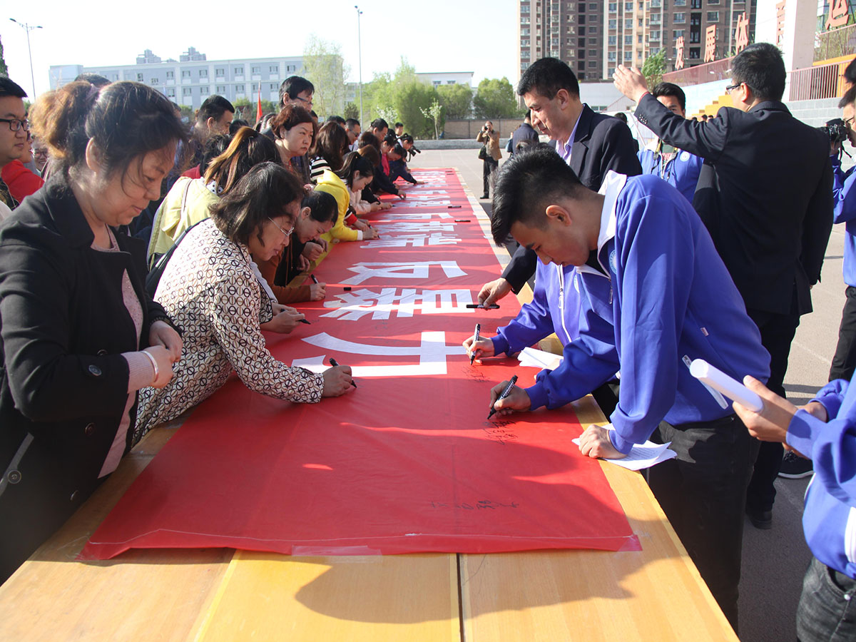 最后,师生们纷纷在 “维护民族团结 反分裂 反极端 反暴力”横幅上表态签名。