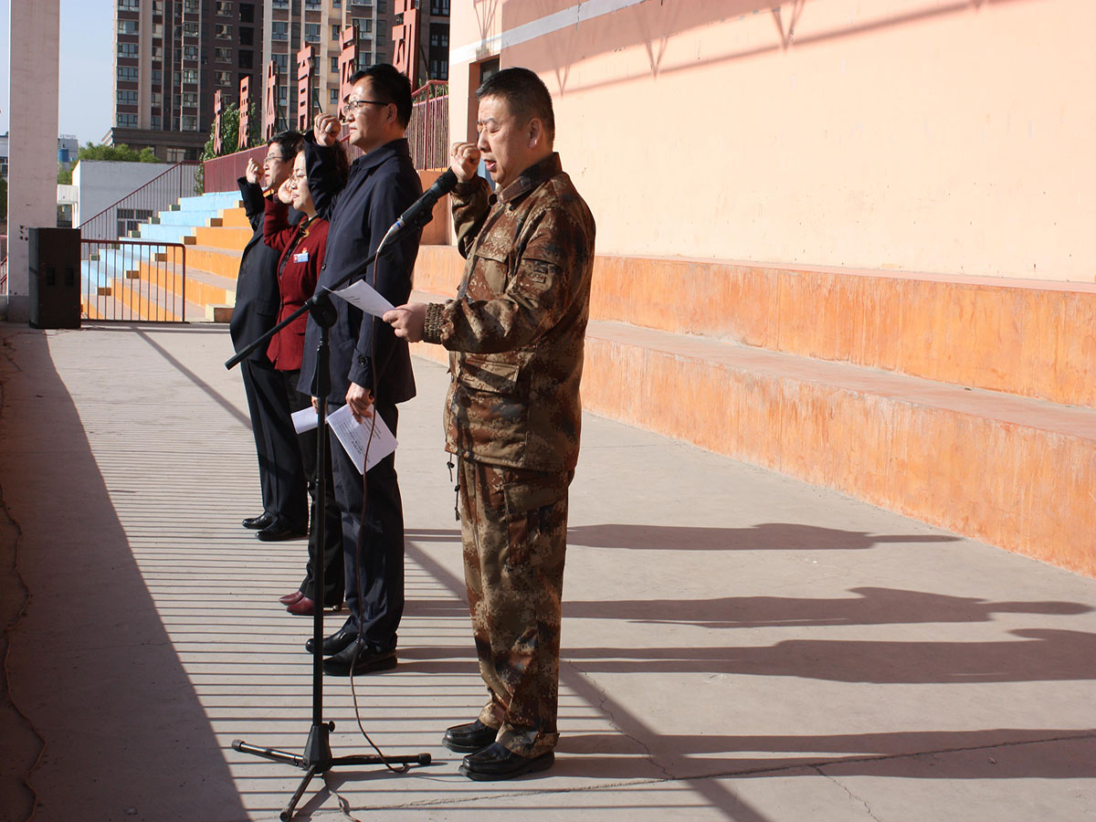 活动中,学院副院长李卫、水建分院院长弓中伟、中职分院副院长马木提、机电分院教师卡米兰及3名学生代表,进行了发声亮剑宣誓。大家一致表示要进一步学习宣传和贯彻落实习近平新时代中国特色社会主义思想,深入贯彻党的十九大及十九届一中、二中、三中全会和全国“两会”精神,聚焦党中央治疆方略,特别是社会稳定和长治久安总目标,坚决贯彻落实总目标、带头坚决维护民族团结、反对民族分裂、带头坚决反对“三股势力”和“两面人”,在意识形态领域坚定坚决与“三股势力”和“两面人”作斗争,凝聚起实现总目标的磅礴力量。