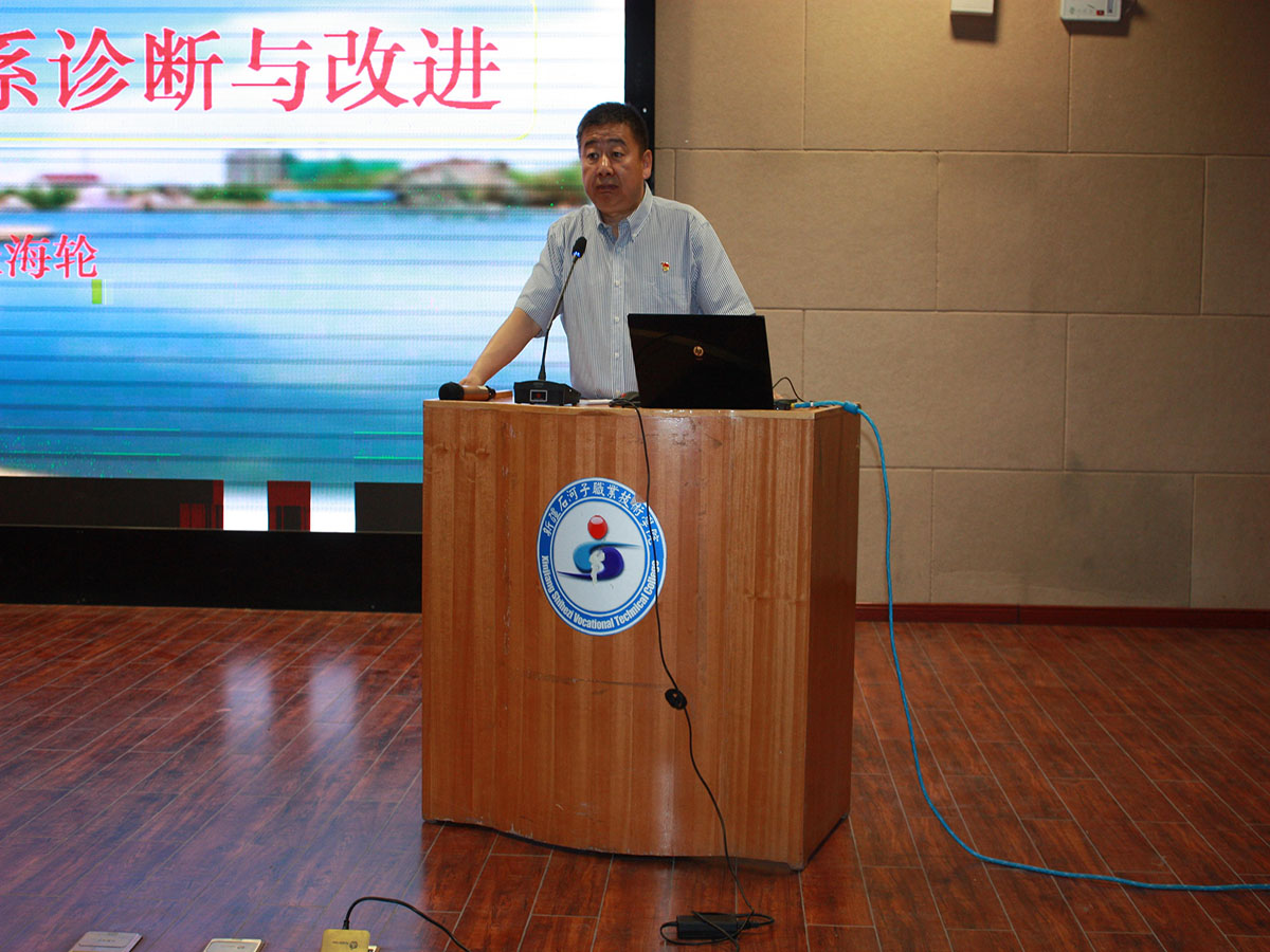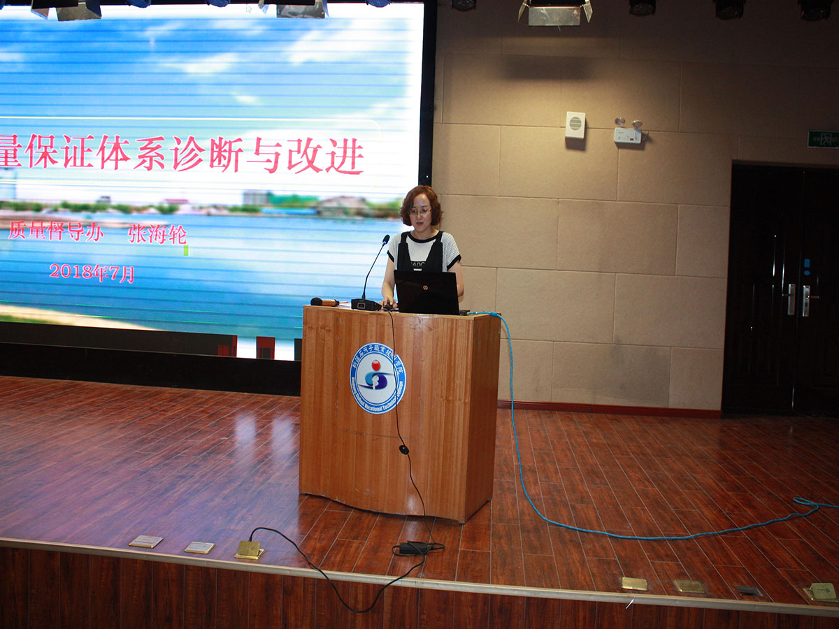 2018年7月3日上午10:30在新综合楼三楼阶梯教室,质量督导办张海轮主任做学院内部质量保证体系诊断与改进工作第二场专题培训。学院全体教职工参加了此次培训。