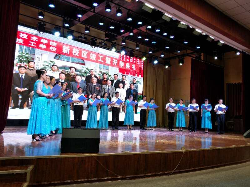 图为学院老师共同朗诵《我骄傲,我是职院人》
