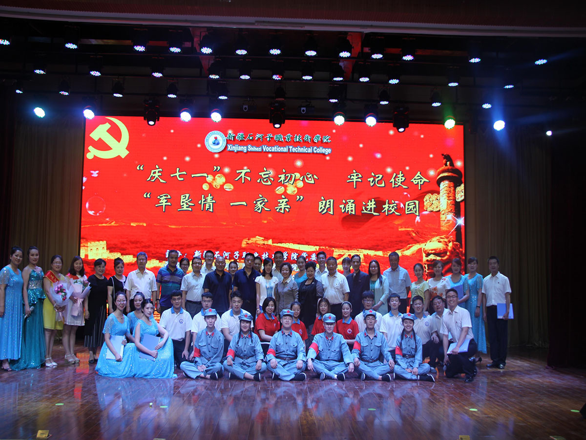 “庆七一”不忘初心 牢记使命“军垦情 一家亲”朗诵进校园活动,由石河子诗歌朗诵协会及学院师生精心组织编排的12个朗诵节目组成,激情洋溢、声情并茂、形式多样、内容丰富的朗诵,讴歌着共产党人永恒的精神追求和崇高的理想信念,深切表达了全院师生对中国共产党、伟大祖国及学院的美好祝愿,整场朗诵时而激情澎湃、时而婉约轻述、时而深沉含蓄、时而雄浑高亢精彩不断,高潮迭起,台下不时传来阵阵掌声。