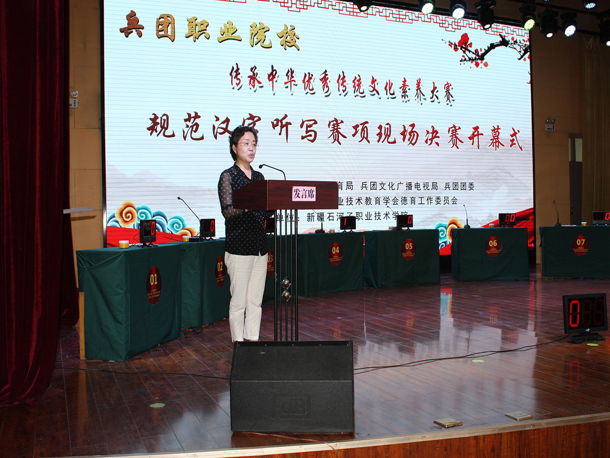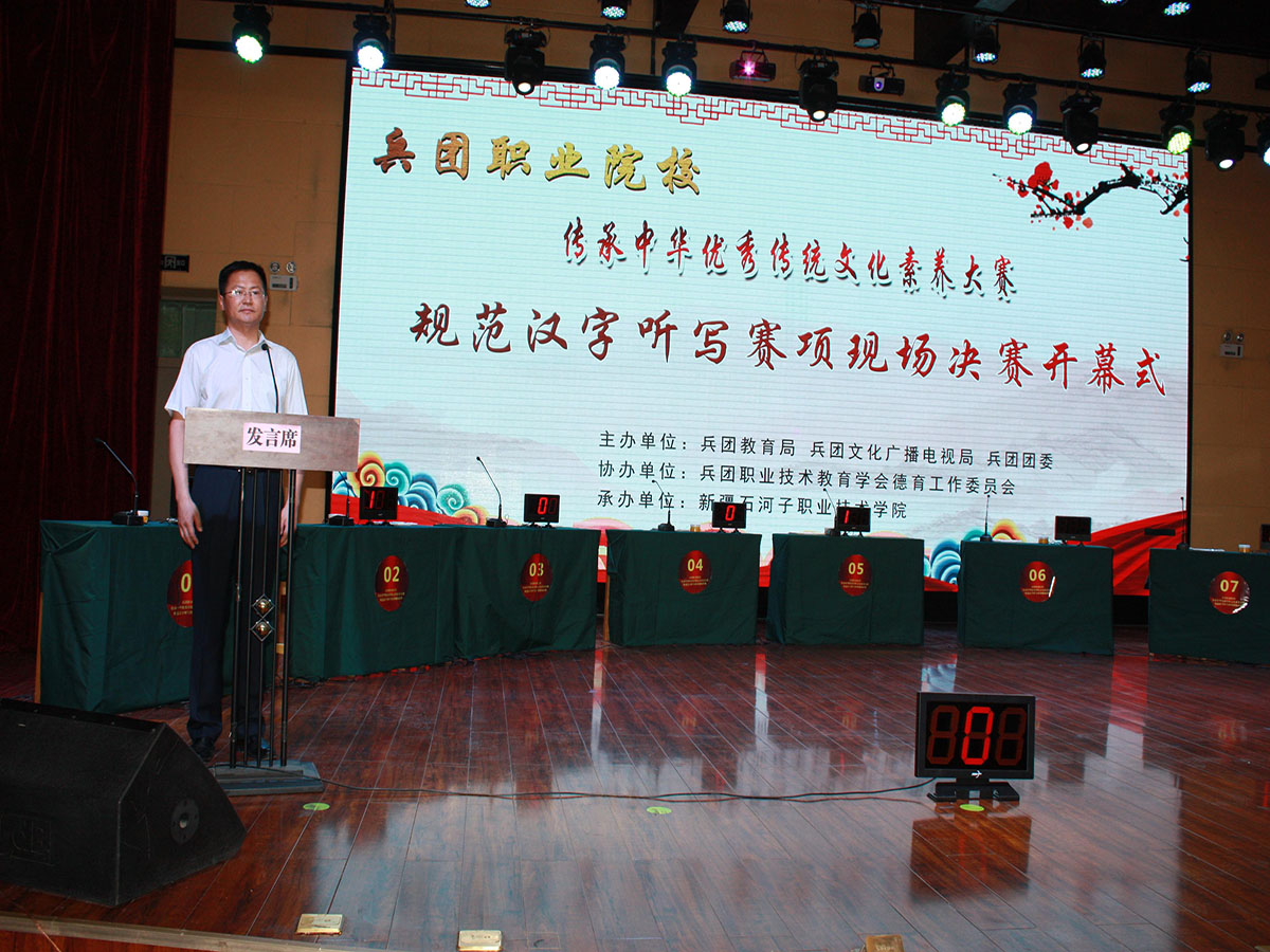 2018年6月20日,由兵团教育局主办,兵团职业技术教育学会德育工作委员会协办,beat365唯一官方网站负责承办的兵团职业院校传承优秀传统文化素养大赛规范汉字听写决赛在beat365唯一官方网站综合楼四楼多功能厅举行。决赛开幕式由学院副院长李卫主持,学院党委书记陈建丽、各学校指导老师及参赛选手、学院学生代表共计800余人参加了开幕式。
