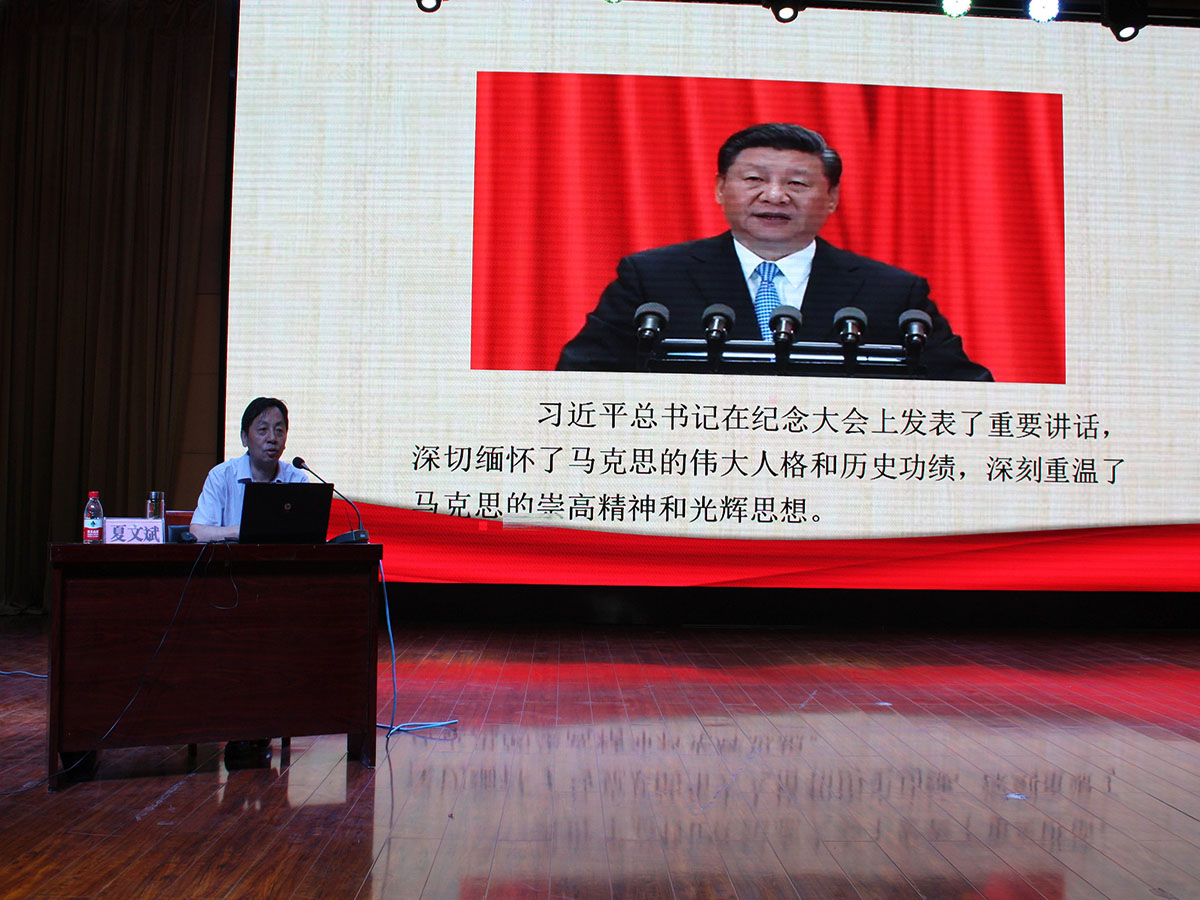 夏文斌书记围绕习近平总书记在纪念马克思诞辰200周年大会上重要讲话精神,从深刻领会把握习近平总书记重要讲话精神的丰富内涵;深刻认识把握习近平新时代中国特色社会主义思想是当代中国马克思主义,具有划时代伟大意义;争做学习、阐释、信仰和践行新思想特别是党中央治疆方略的排头兵三个方面为我们讲述了马克思主义对中国的深远影响及学习马克思主义的方式方法。