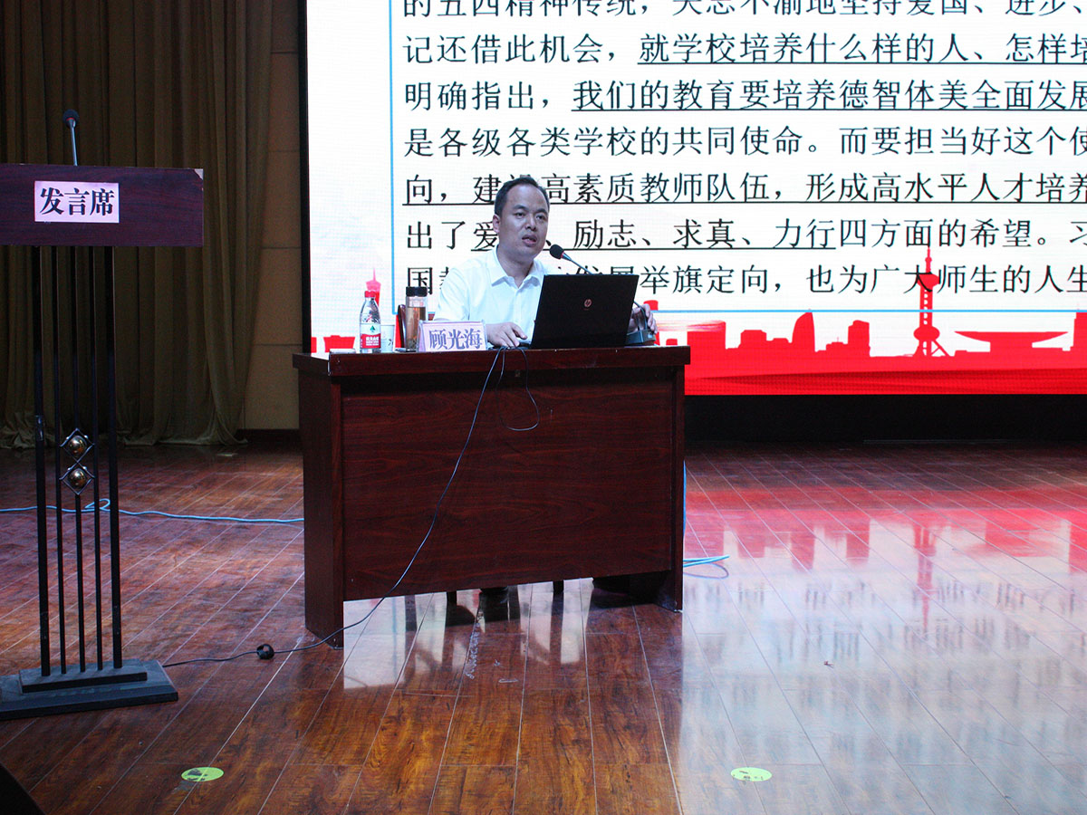 顾光海书记围绕习近平总书记在北京大学师生座谈会上重要讲话精神,从坚持社会主义办学方向,办出中国特色社会主义一流大学;坚持和巩固马克思主义指导地位,擦亮中国大学最鲜亮的底色;把握新时代教育的新使命,争做新时代“四有”好教师;把握人生际遇,在实现中国梦的生动实践中放飞青春梦想等五个方面为广大师生带来宣讲。对在座教师、学生提出了要求,并对如何办中国特色世界一流大学,马克思主义理论对中国的影响、如何学习马克思主义进行了精彩阐释。