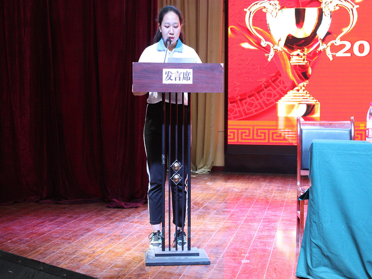 随后优秀宿管学生干部(国家励志奖学金获得者)姚嘉瑜上台代表全体宿管部成员发言。
