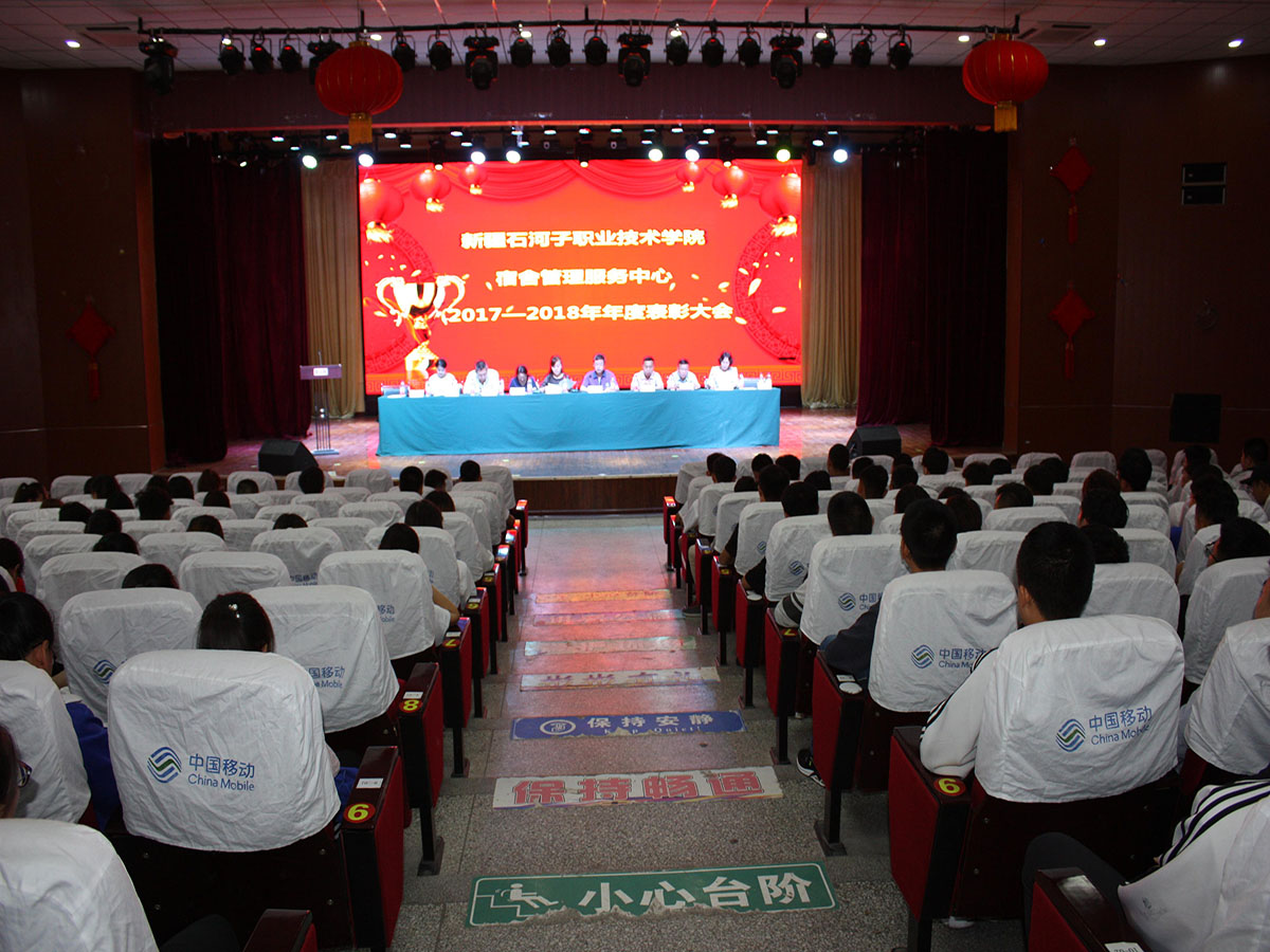 为弘扬宿舍文化,营造温馨友爱的住宿环境,2018年6月12日下午,学院在综合楼4楼阶梯教室召开2017-2018年度宿舍管理表彰大会。会议由学院副院长耿荣主持,学院副院长王华东、相关部门负责人及各分院领导、各公寓楼学生宿管干部及学生代表近八百人参加本次会议。