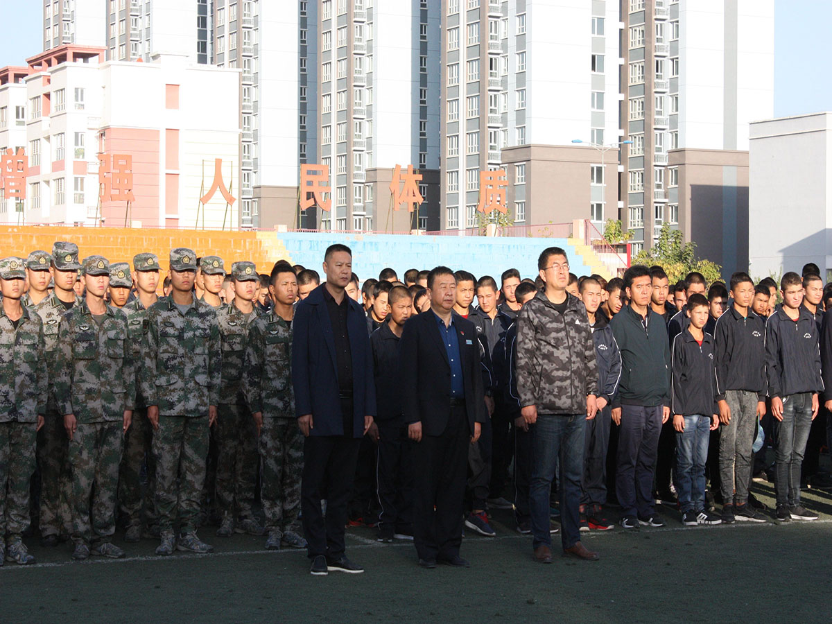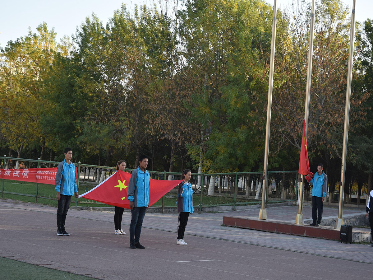 秋高气爽,天空一碧万顷,鲜艳的五星红旗伴随着朝阳在嘹亮的国歌声中缓缓升起。今天是祖国的母亲69岁华诞,学院院长王敏弦、中职分院书记俞峰、学生处处长陈峻,南疆的“两后生”、在校士官生、教师辅导员、学生干部共计361名师生举行升国旗仪式为祖国母亲庆生。