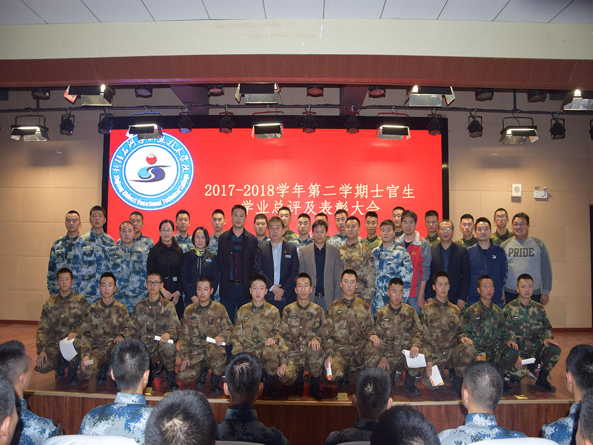 2018年10月18日下午5点,机电分院在综合楼4楼会议室召开士官班2017-2018学年第二学期学业总结及表彰大会,学院院长王敏弦、学生处处长陈峻、机电分院书记胡英、院长顾建疆、邵静、秦邵华老师、班主任、教官和二百余名士官生参加了此次大会。