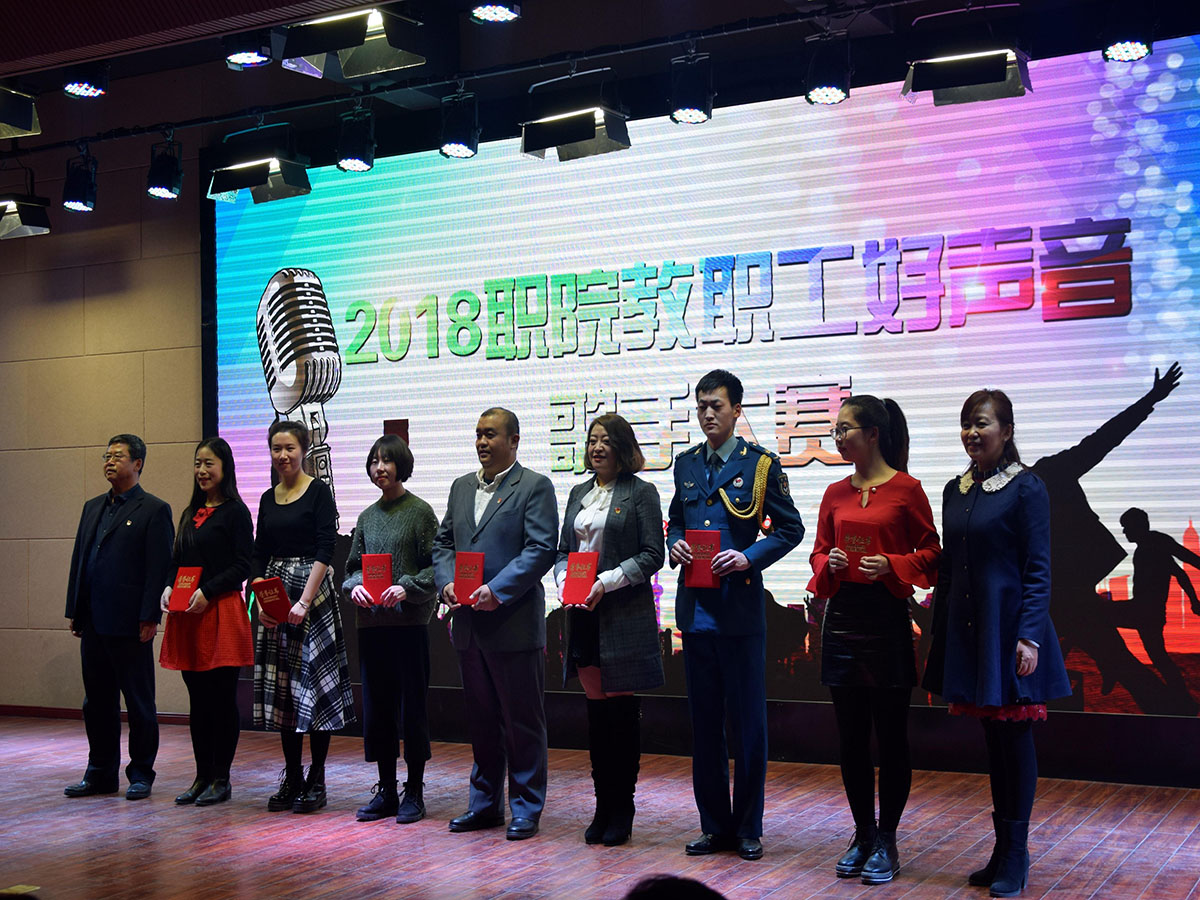 本次好声音歌手比赛得到了学院领导高度重视和广大教职工积极参与。参赛选手由各工会小组推荐组成,评委有学生处处长陈峻、技师办副主任张海芸、机电分院李金霞、机电分院杨苓、中职分院李君霞担任。